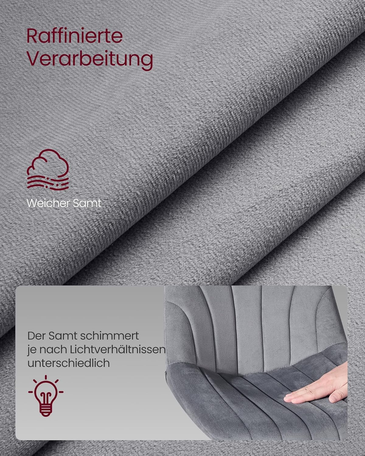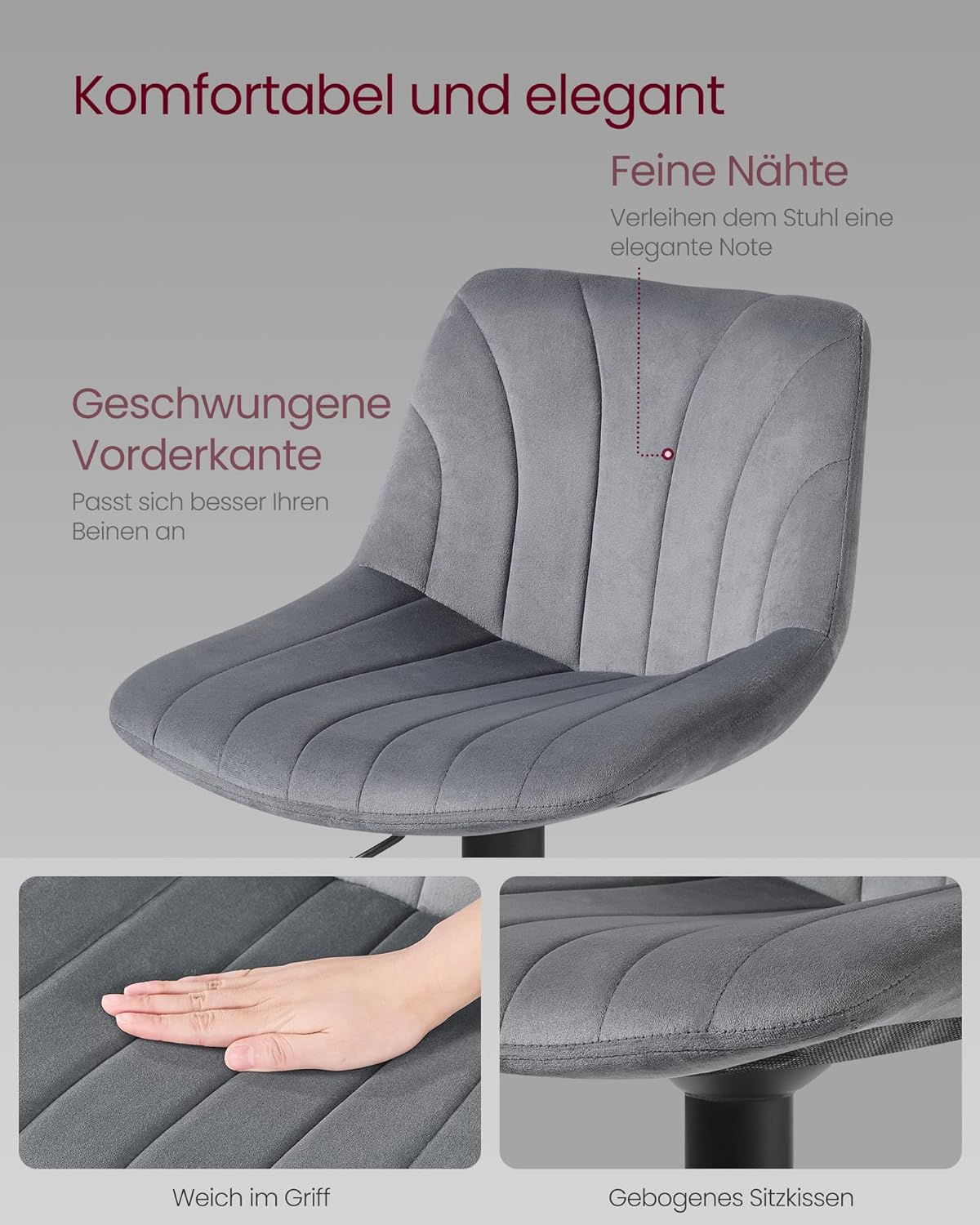 Deze set van 2 barkrukken straalt verfijning uit dankzij de hoogwaardige fluwelen bekleding en fijne stiksels. De zachte textuur en elegante uitstraling maken deze krukken tot een stijlvolle toevoeging aan zowel moderne als klassieke interieurs.
