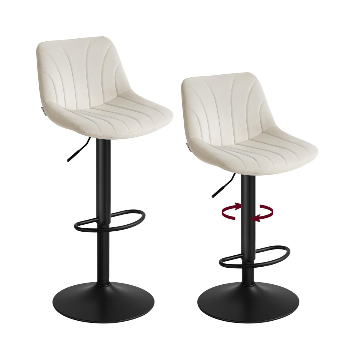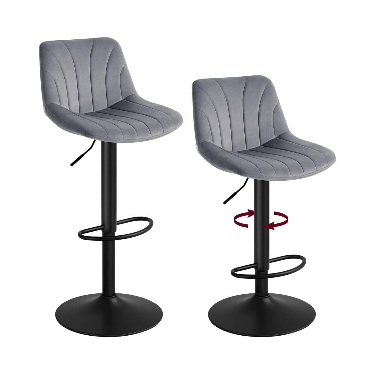 Fluwelen Barkrukken Set van 2 – In Hoogte Verstelbaar & 360° Draaibaar – Met Rugleuning En Voetsteun