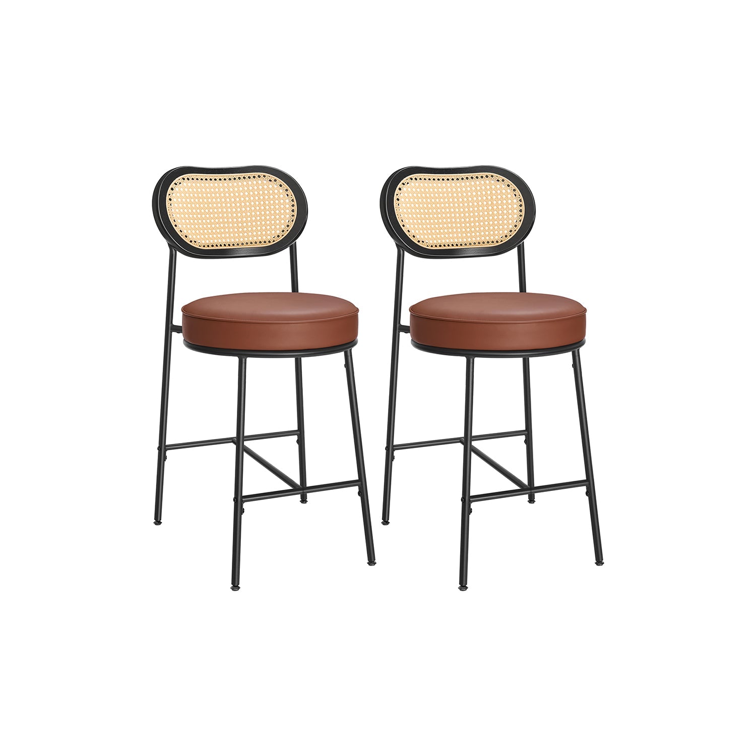Barkrukken Set van 2 – BOHO Chic met Rotanlook Rugleuning – Hoog Zitcomfort – Voor Keuken, Bar of Eiland