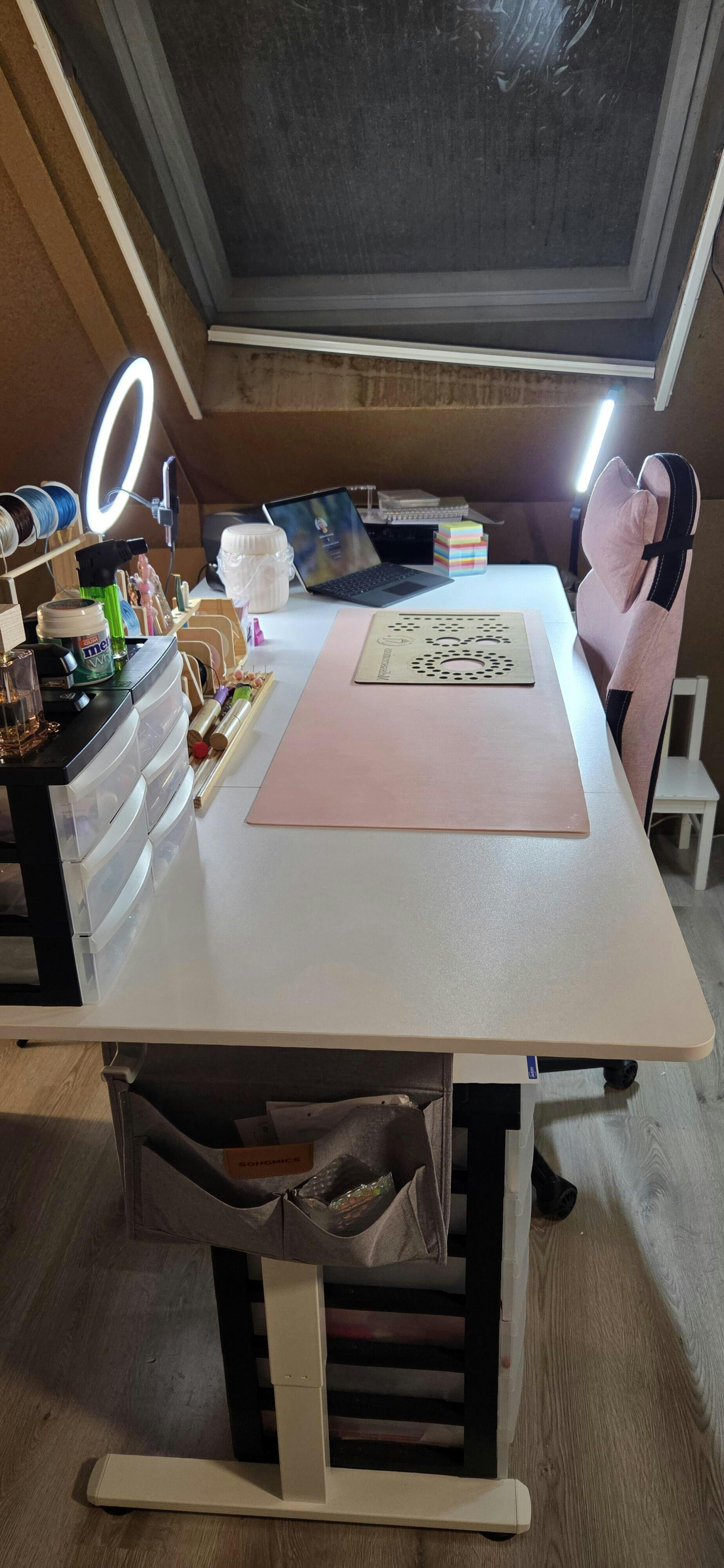 Voorzien van 2 kabeldoorvoeren voor een netjes bureau, een stoffen organizer voor accessoires en een stevige haak voor tas of koptelefoon. Zo blijft uw werkplek altijd georganiseerd.