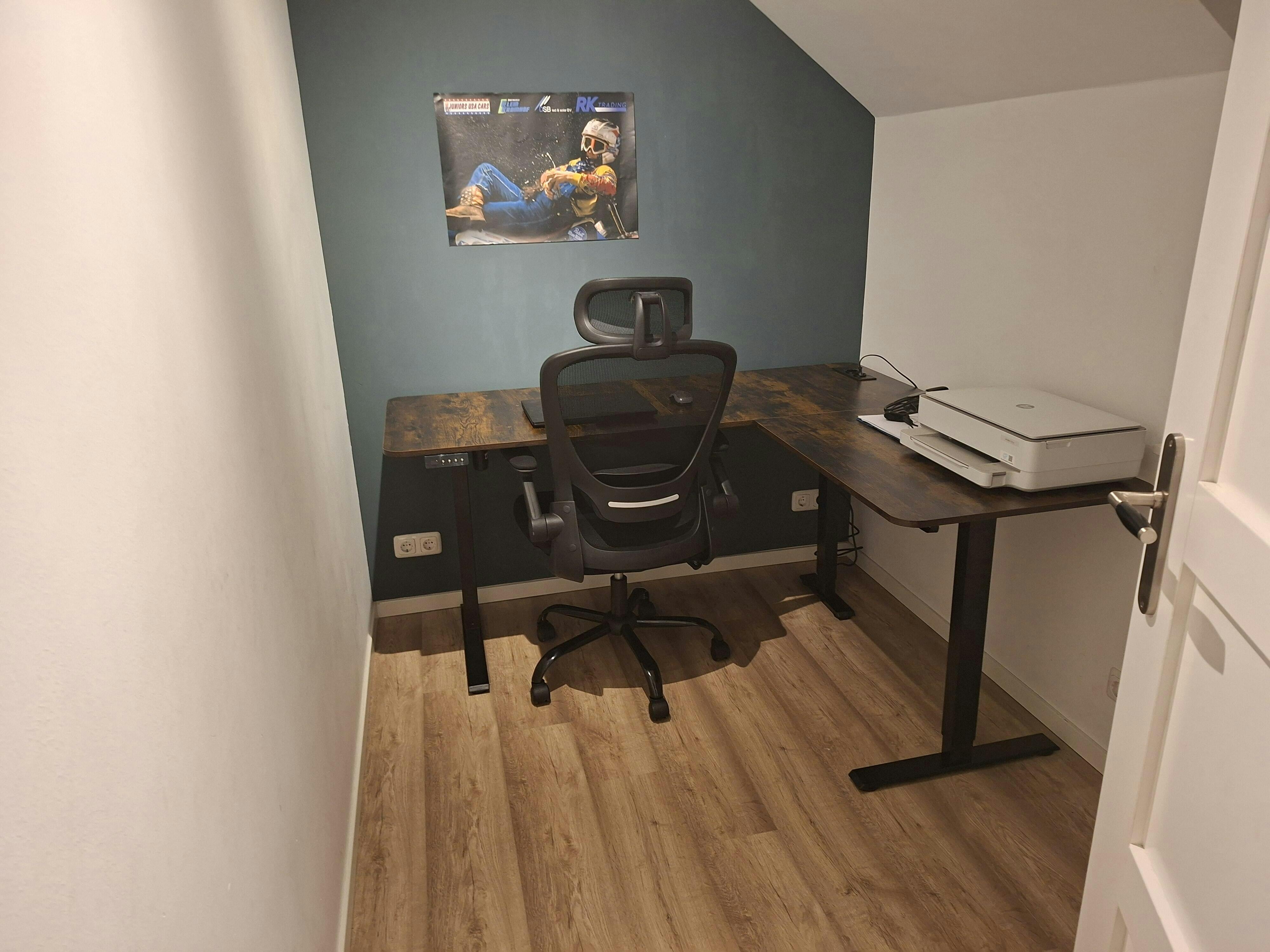 Het stalen frame met versterkte dwarsbalken biedt een hoge stabiliteit en draagt tot 80 kg. De stille motor (<48 dB) zorgt voor een geruisloze hoogteverstelling – ideaal voor geconcentreerd werken zonder storend geluid.