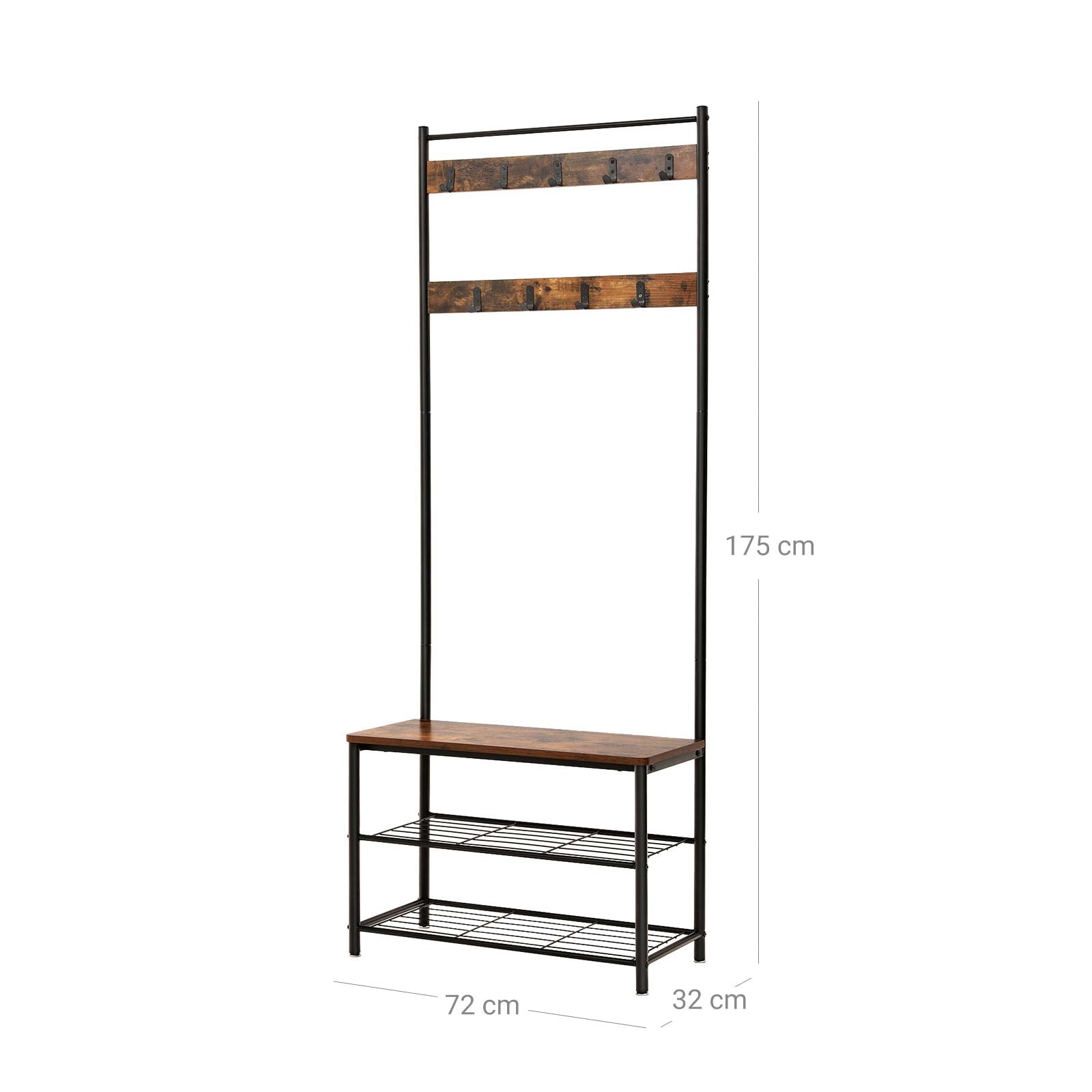 Kapstok met Bank – 3-in-1 Garderoberek – Jassen, Schoenen & Zitbank – 70 x 32 x 175 cm