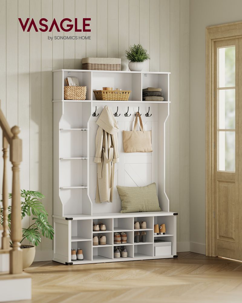 ✔ Combineert kapstok, schoenenrek, opbergplanken en zitbank in één multifunctioneel meubel