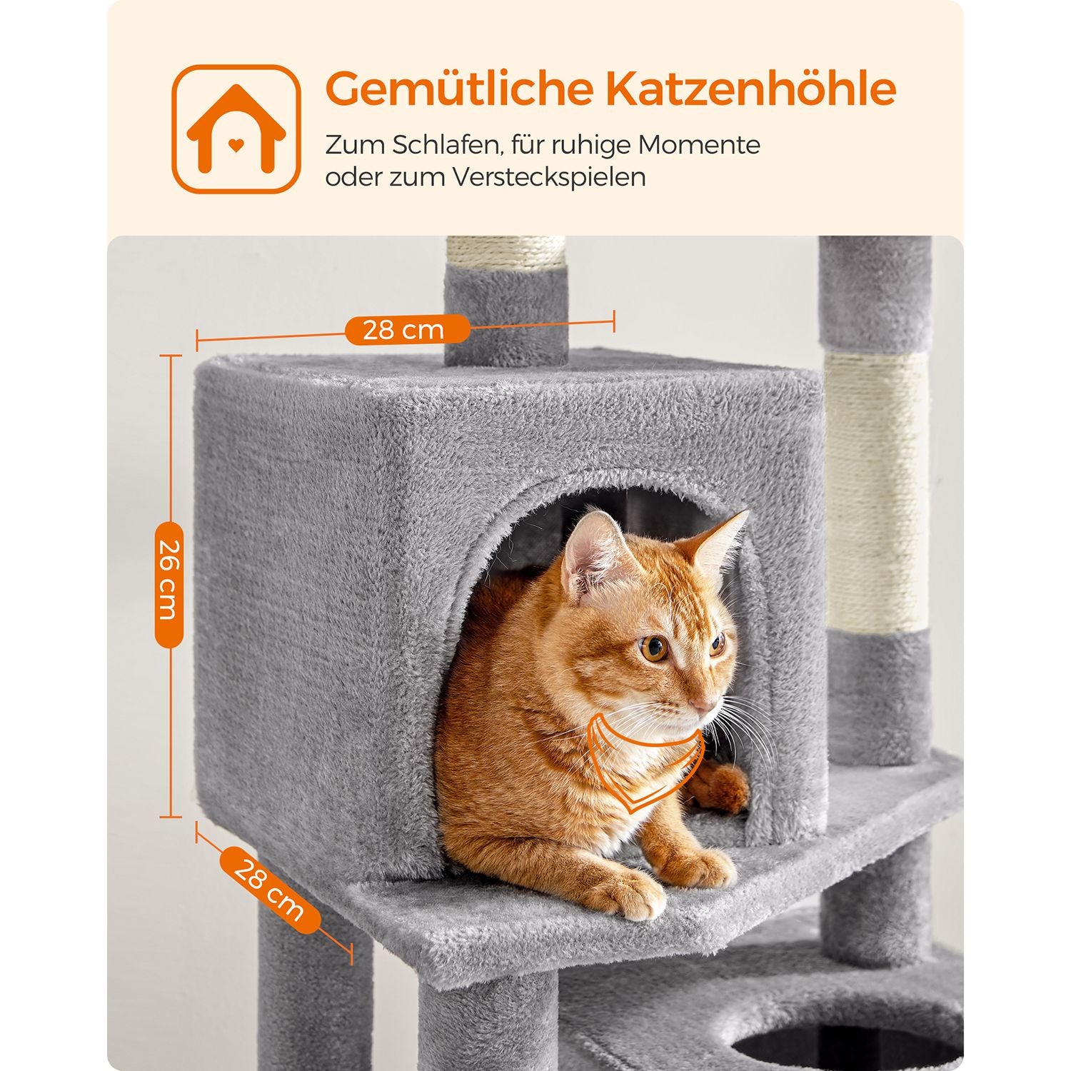 Kattentoren met 2 Grotten en Krabpalen – 155 cm Hoog – Multilevel Speelhuis voor Meerdere Katten