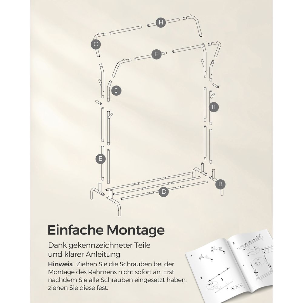Dankzij de eenvoudige structuur en duidelijke instructies is dit kledingrek in een mum van tijd gebruiksklaar.