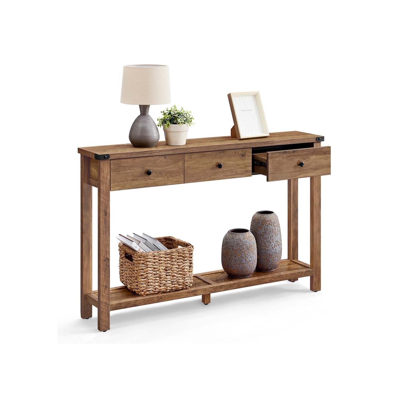Landelijke Wandtafel – Met 3 Lades en Open Legplank – Massief Hout – Rustieke Stijl – Honingbruin