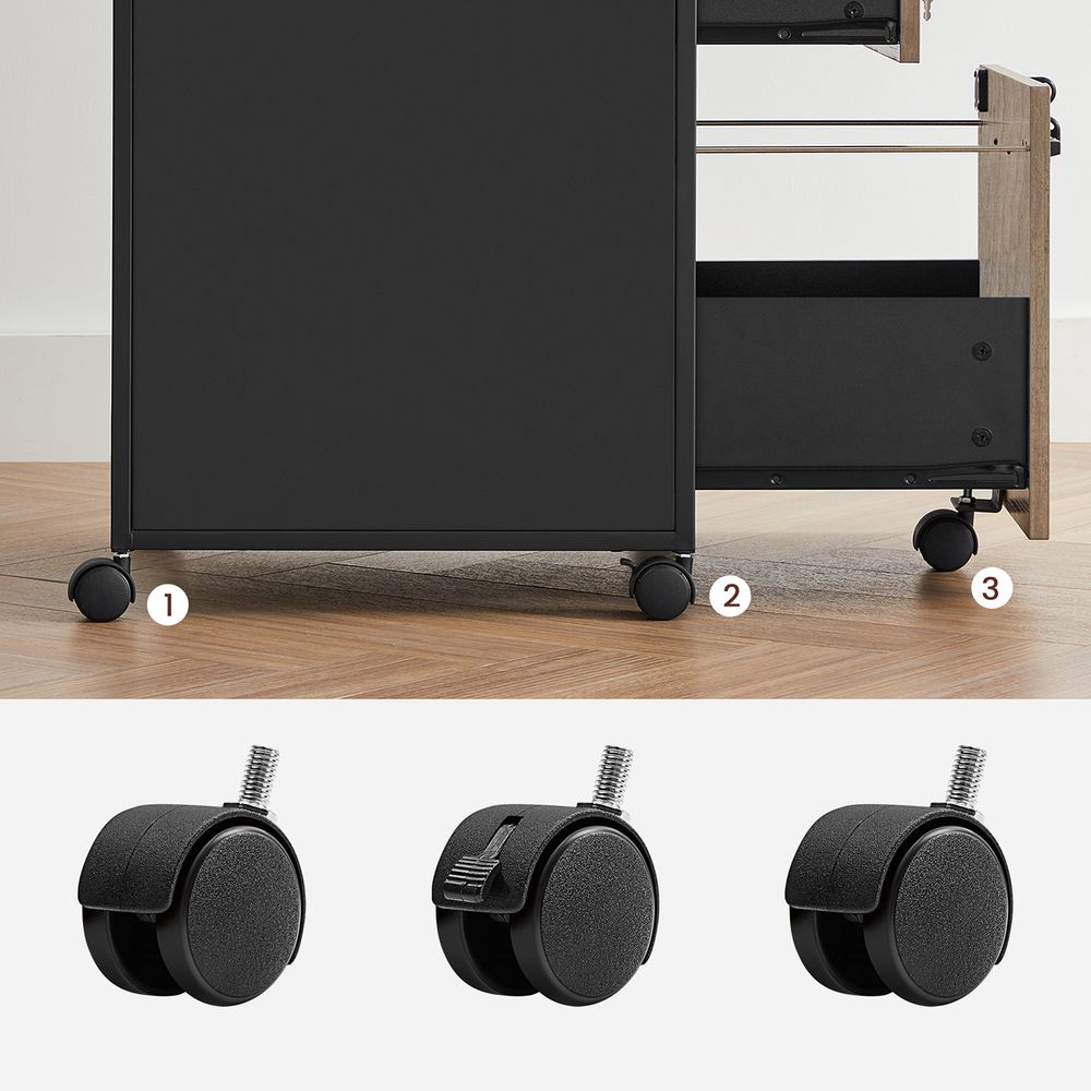 Met zijn combinatie van zwart staal en warm houtdecor past deze rolcontainer perfect in een modern thuiskantoor, woonkamer of onder een bureau. Dankzij het compacte formaat van 44 x 42 x 69 cm is hij makkelijk te plaatsen.