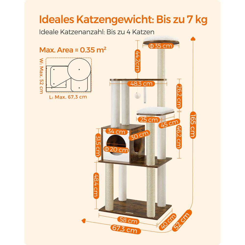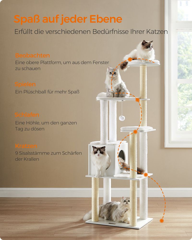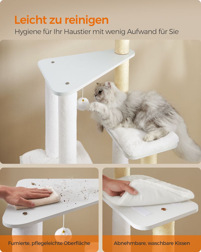 Moderne Krabpaal Van 165 cm – Stijlvol Kattenmeubel Met Zachte Kussens, Krabpalen en Afneembare Hoezen
