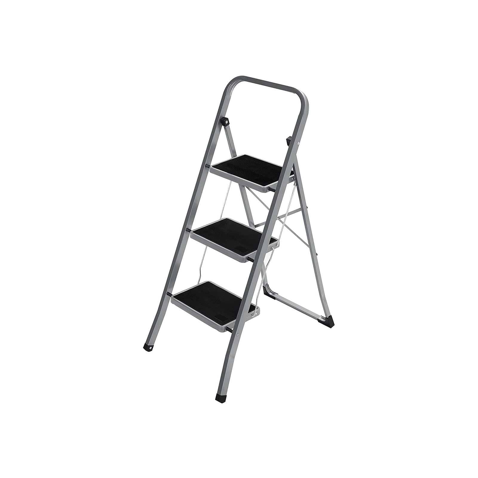Wat is het belangrijkste bij een ladder? Stabiliteit natuurlijk! Deze 3-treden ladder is gemaakt van stevig staal en kan tot 150 kg dragen. Ideaal om veilig lampen te vervangen, gordijnen op te hangen of bij hoge planken te komen.