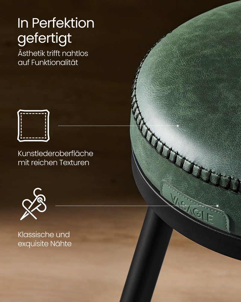 Het waterbestendige kunstleer is moeiteloos schoon te maken, terwijl de matzwarte stalen poten krasbestendig zijn. Zo blijven de krukken jarenlang mooi.