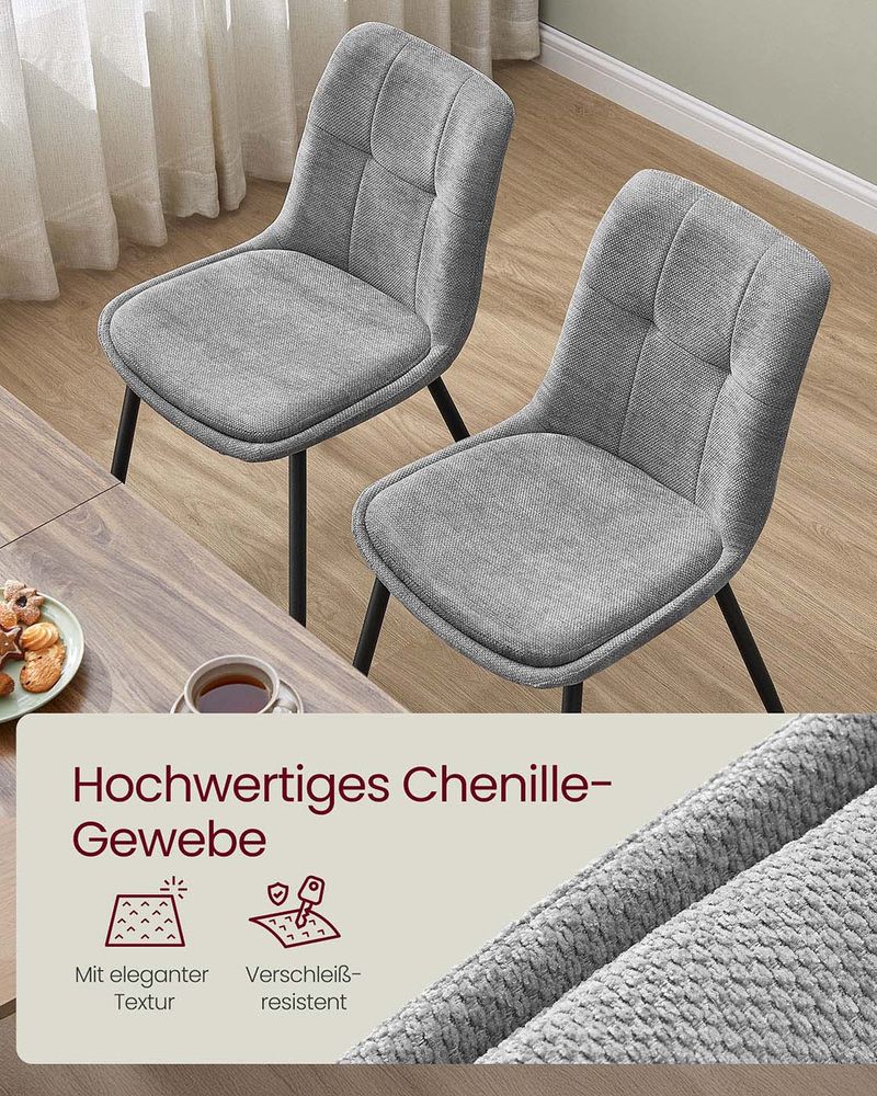 Set van 2 Eetkamerstoelen – Chenille Stof – Ergonomisch & Comfortabel – Metalen Poten – 56 x 50 x 81 cm