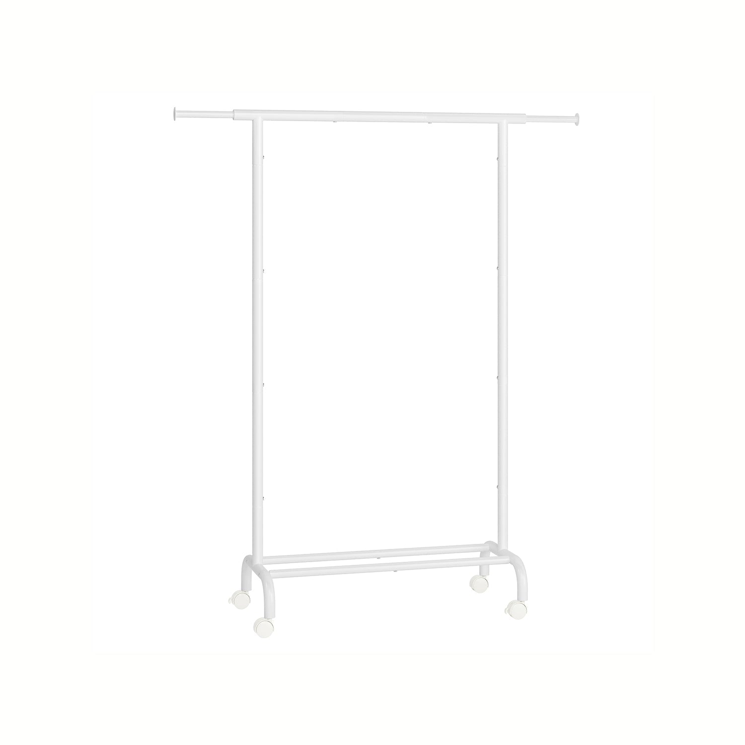 Uitschuifbaar Kledingrek op Wielen – Kledingstandaard 83-120 cm – Met Schoenenplank – 45 kg Draagvermogen