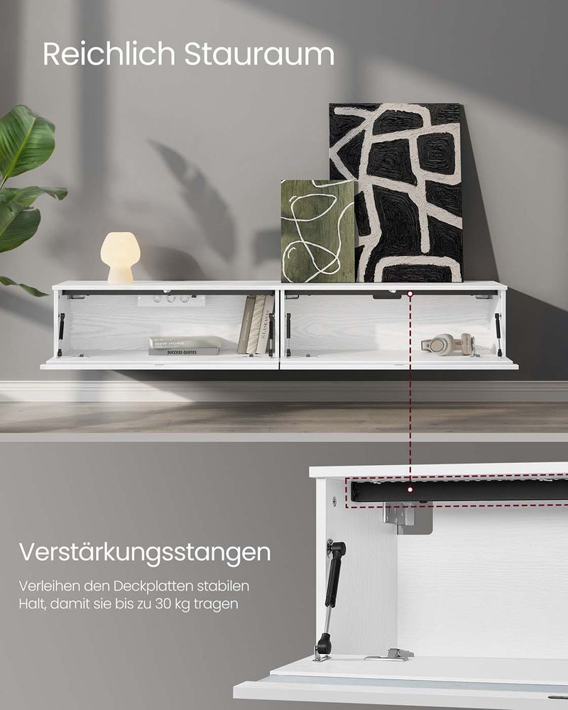 Zwevend TV-Meubel – Met LED-Verlichting en Oplaadstation - Inclusief Wandmontage