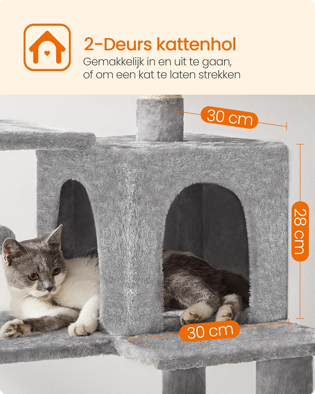 Krabpaal voor Katten – Met Hangmat, Knuffelgrot en Speelballetje – 143 cm Hoog – Voor 1-4 Katten