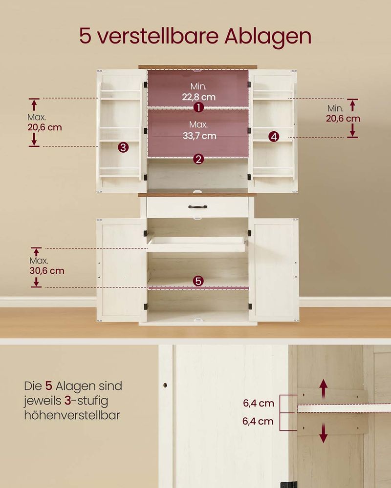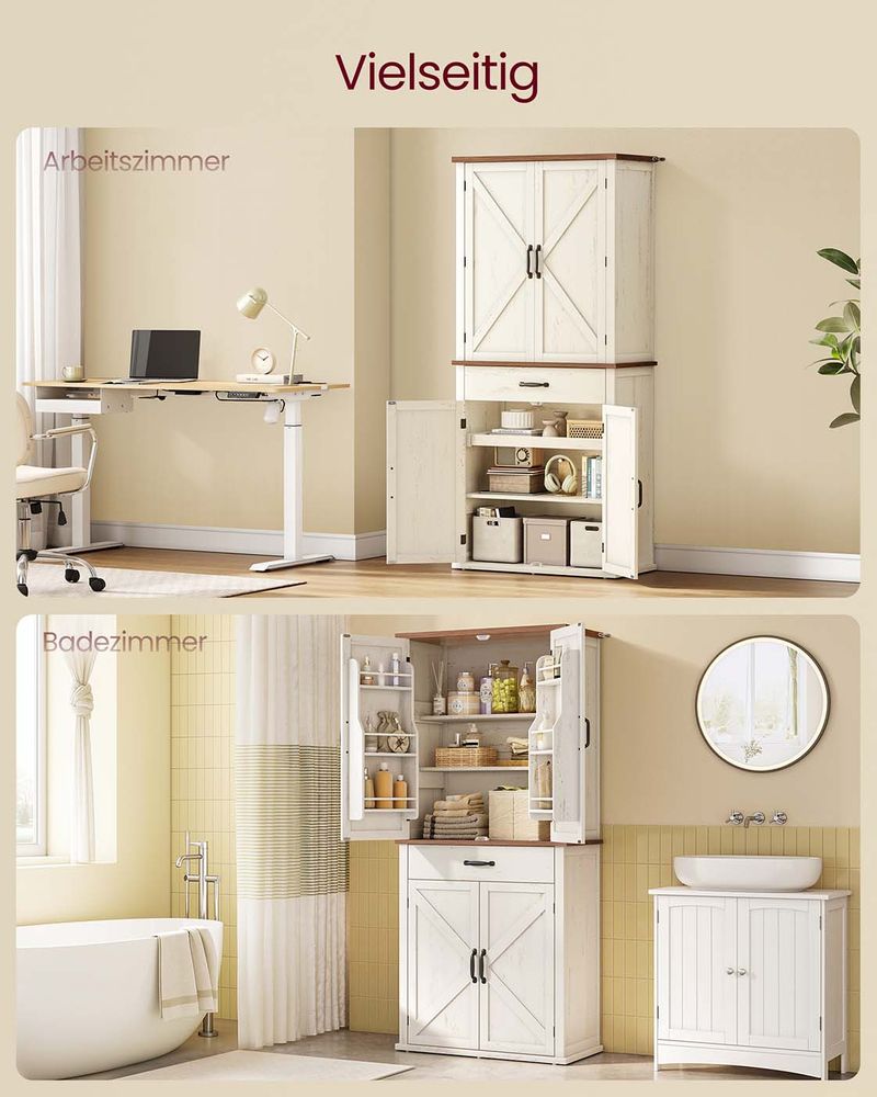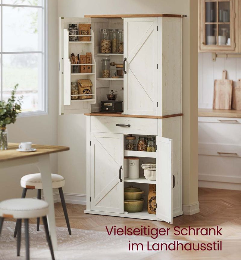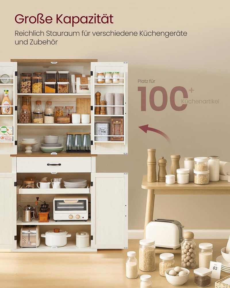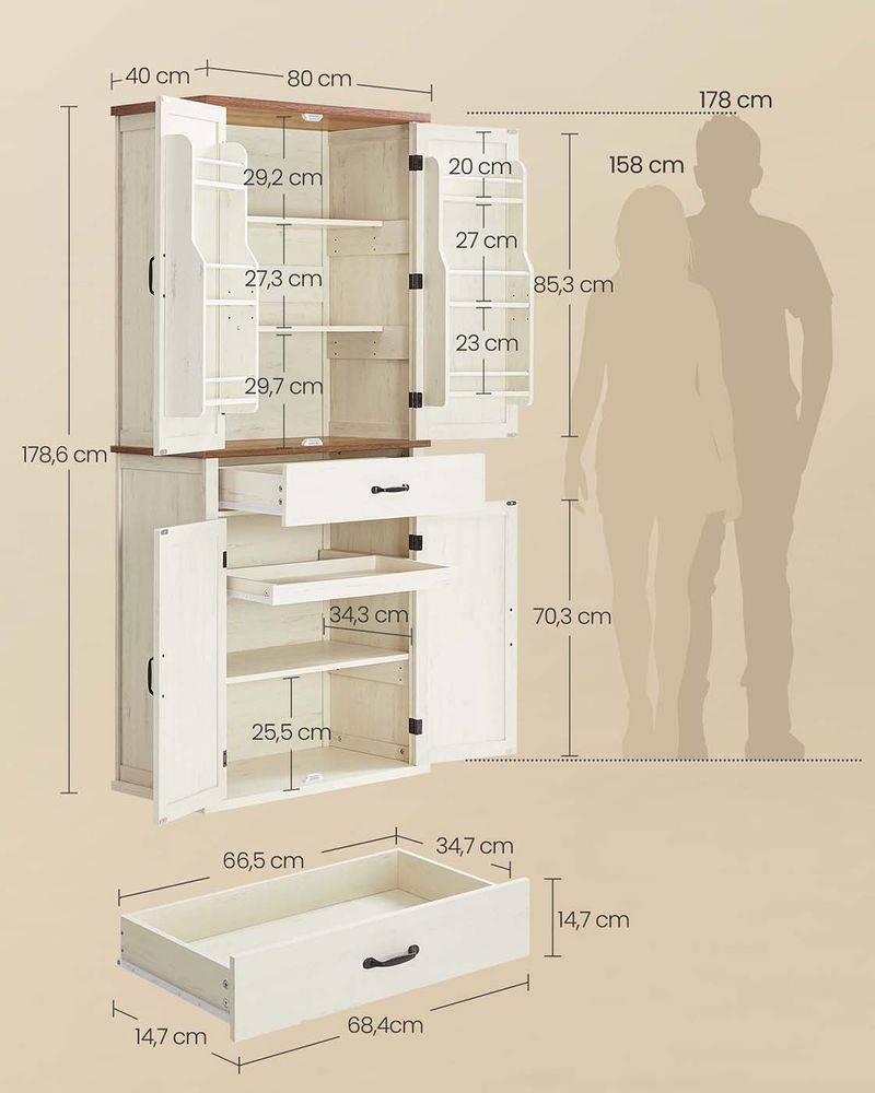 Voorraadkast met Lade en Uittrekbaar Vak – 80 cm Breed – Verstelbare Planken – Vintage Wit