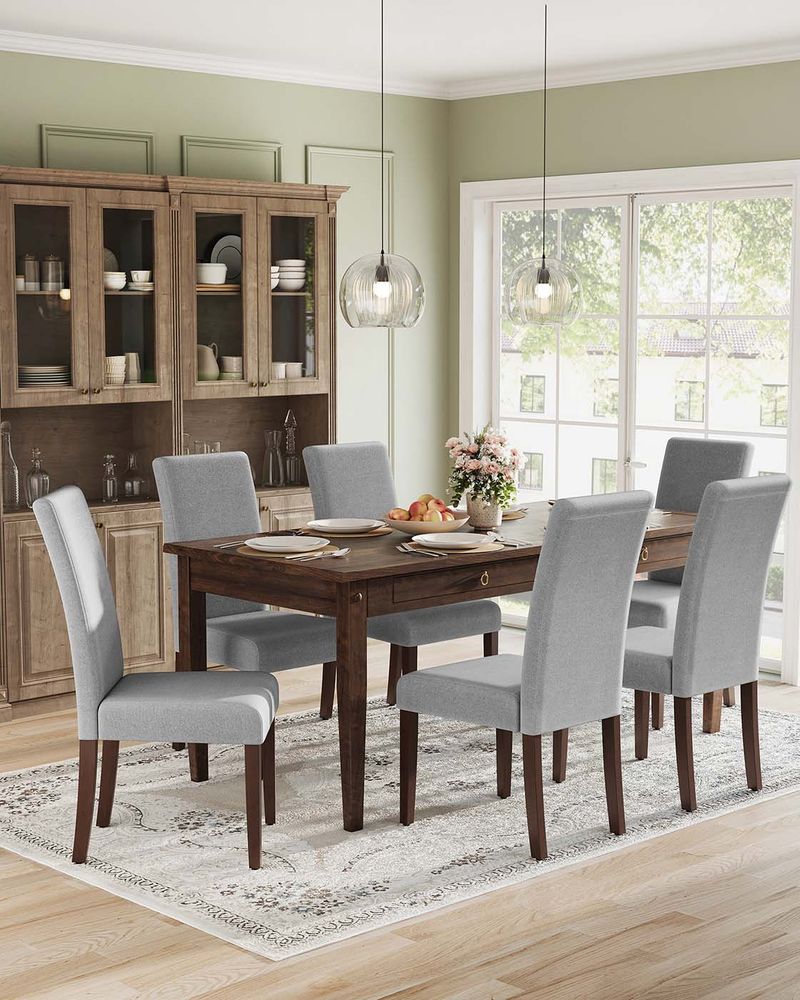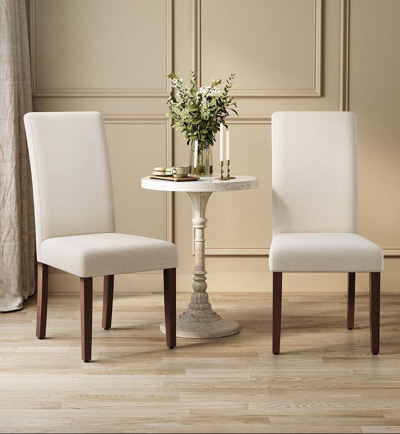 Eetkamerstoelen Set van 2 – Gestoffeerde Zitting – Houten Poten – Ergonomische Rugleuning – Klassiek Design