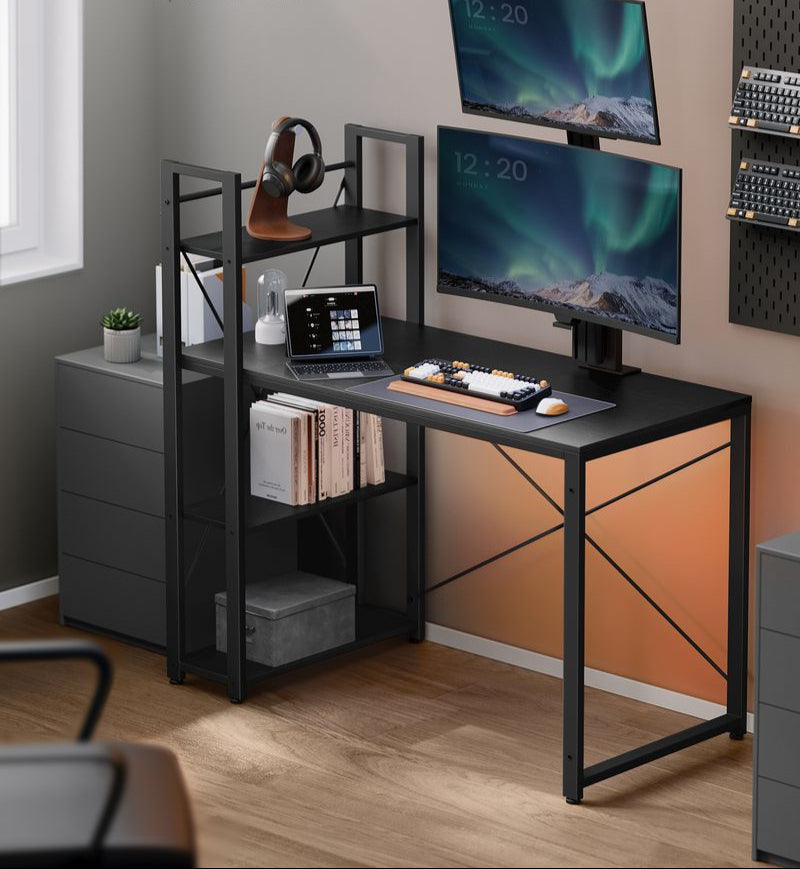 Bureau met Boekenplank – 120 cm Breed – Flexibel te Monteren Plank Links of Rechts – Industrieel Design – Tot 100 kg Draagvermogen