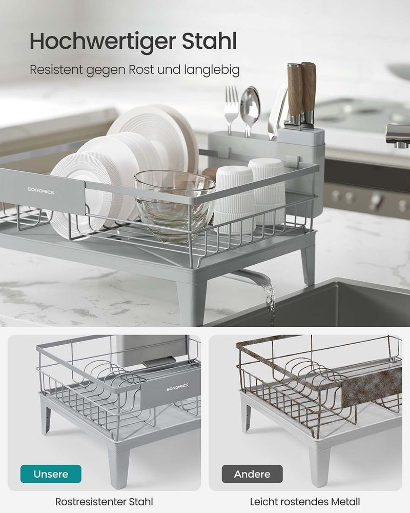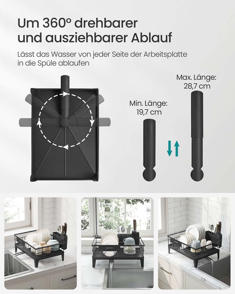 Afdruiprek met Bestekhouder – 31 x 42 cm – Roestbestendig – 360° Draaibare Waterafvoer