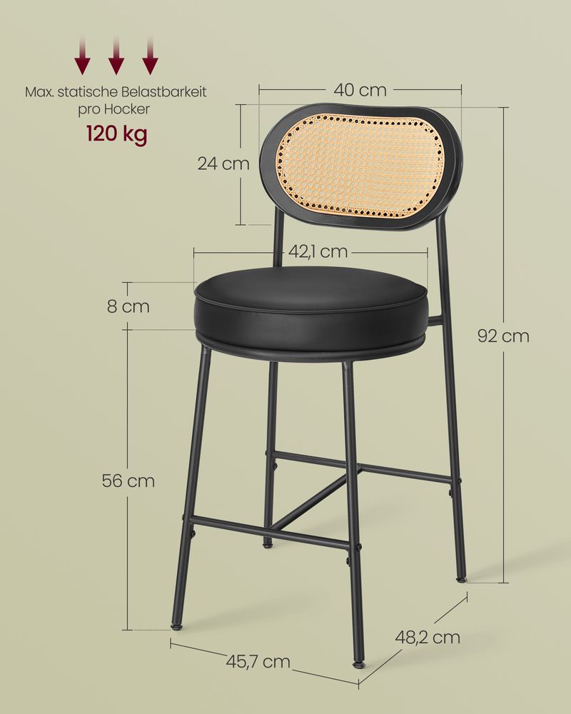 Barkrukken Set van 2 – BOHO Chic met Rotanlook Rugleuning – Hoog Zitcomfort – Voor Keuken, Bar of Eiland
