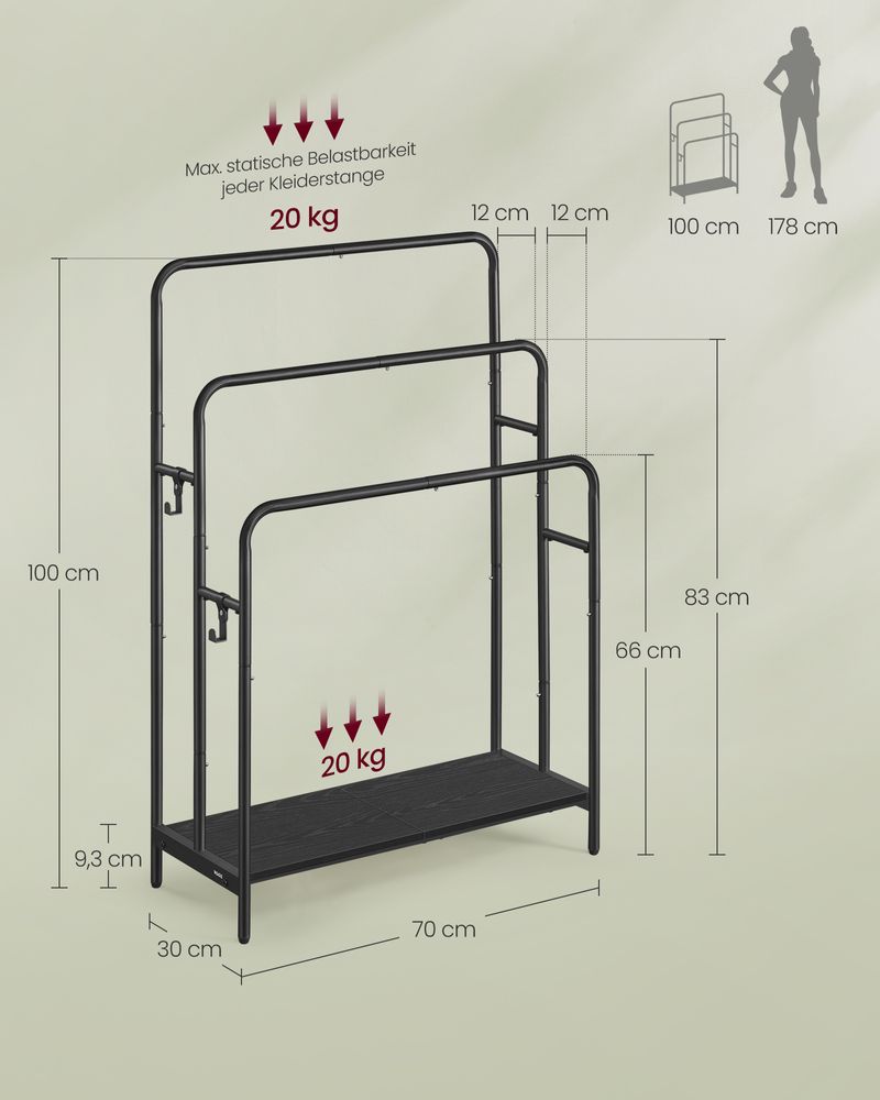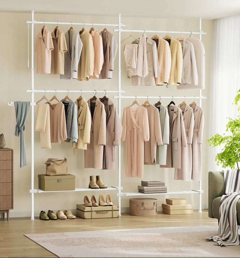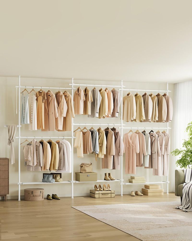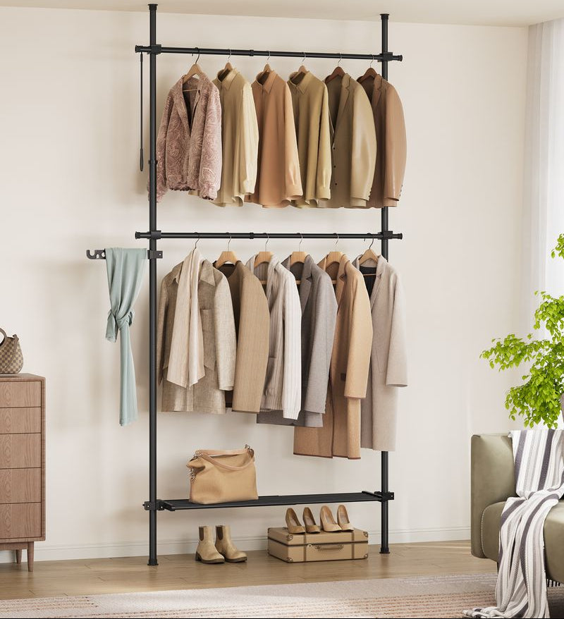 Vrijstaande Kledingrek met 3 Stangen en Legplank – Modern Ontwerp – Stabiel & Ruimtebesparend