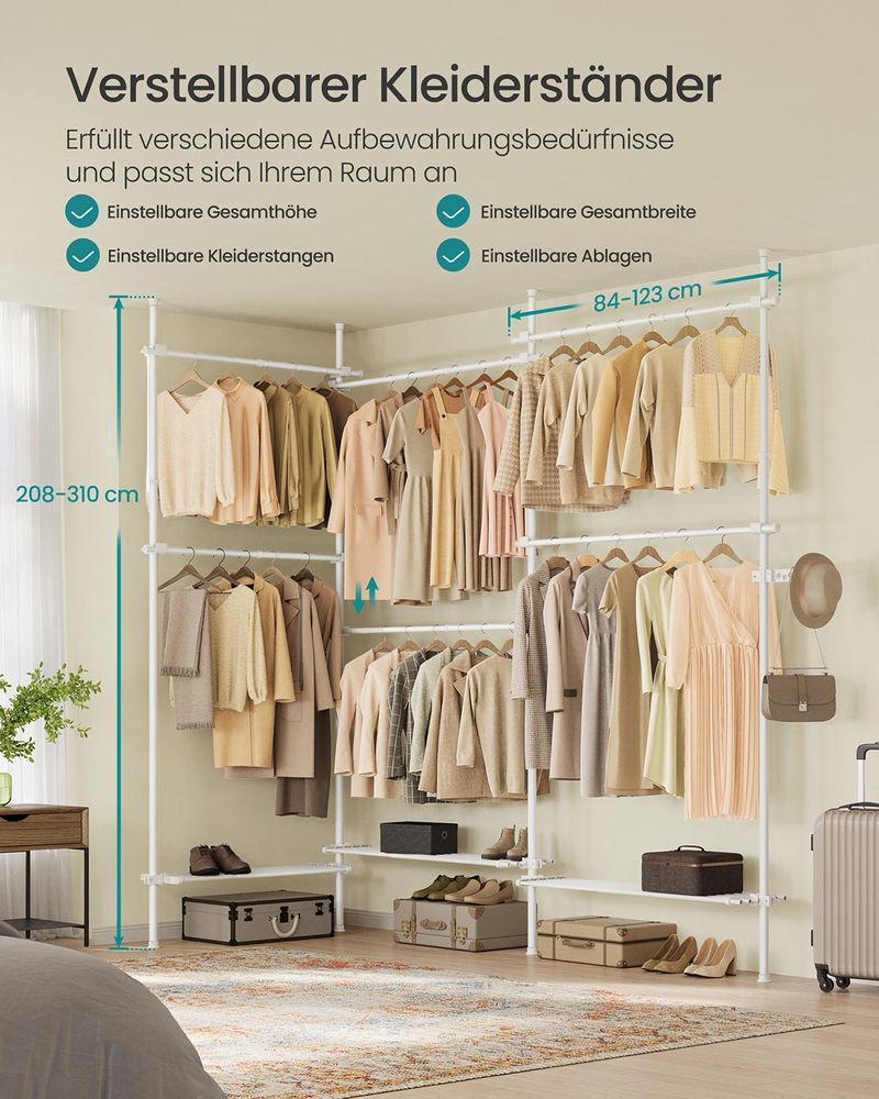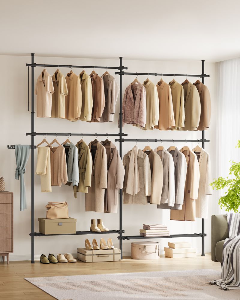 Uitschuifbaar Kledingrek – Verstelbaar in Hoogte en Lengte – Met Wielen en Dubbele Stang