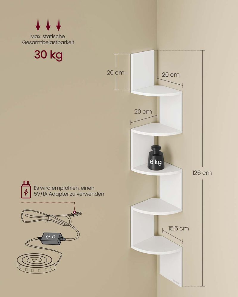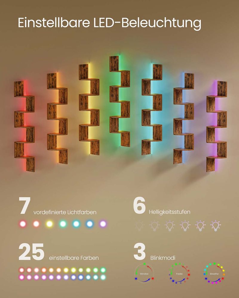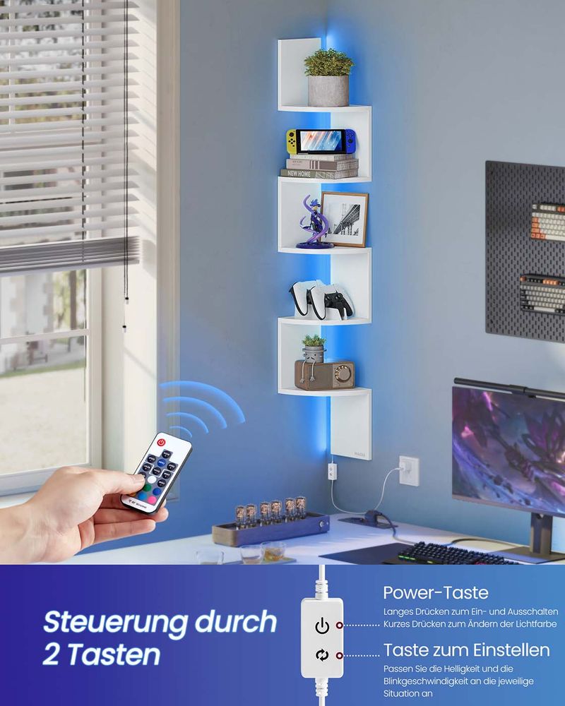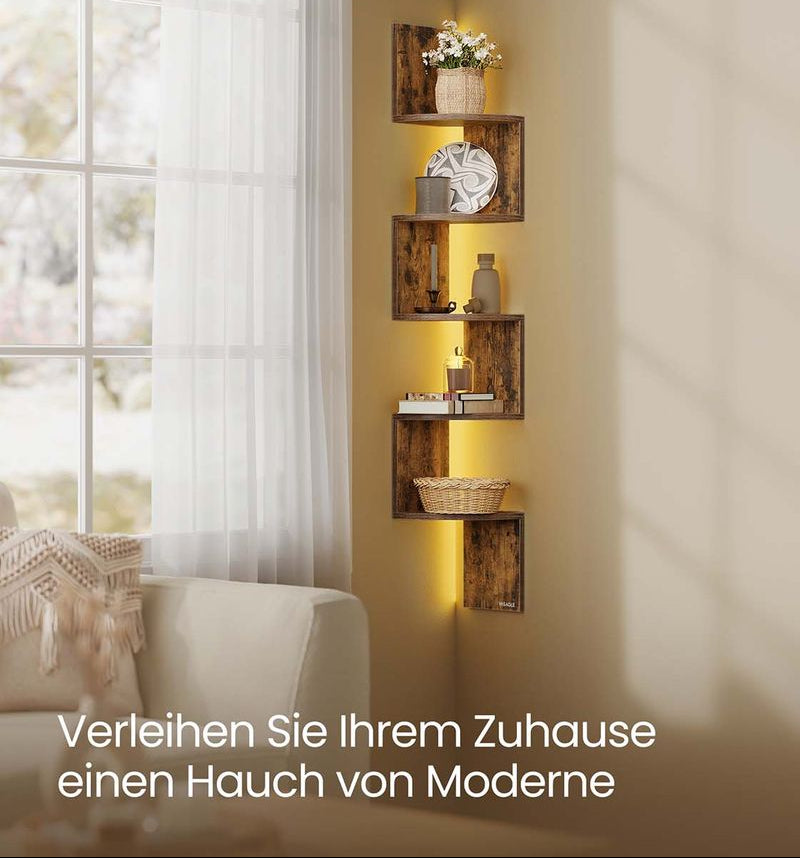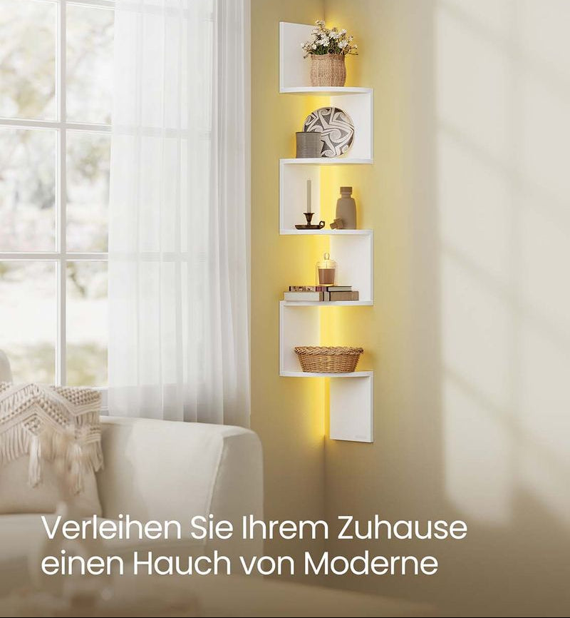 Hoekrek Met LED-Verlichting en Zigzagontwerp – 5 Niveaus, Sfeervolle Verlichting en Ruimtebesparend Ontwerp