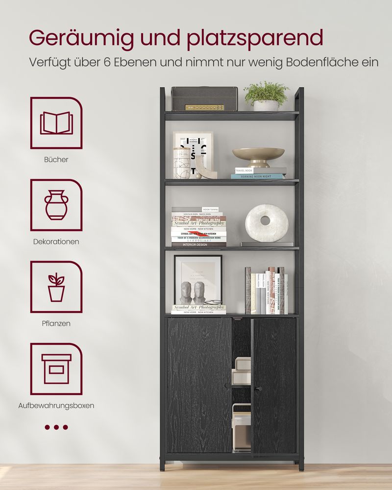 Boekenkast met Deuren en Verstelbare Planken – Industrieel Stijlvol Opbergmeubel voor Woonkamer of Kantoor