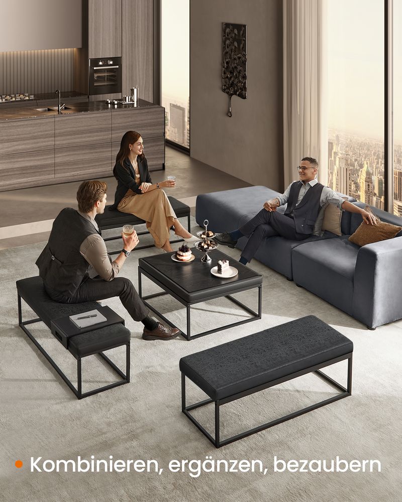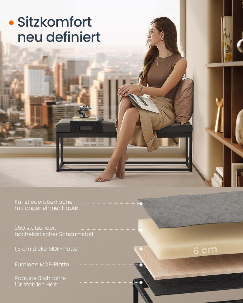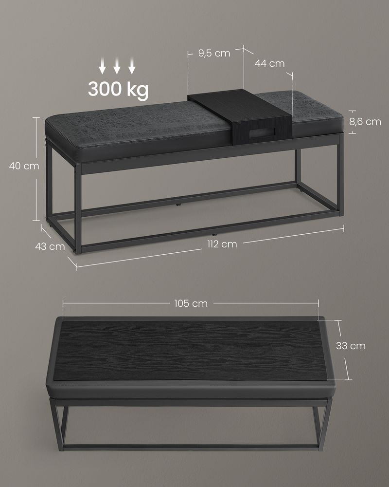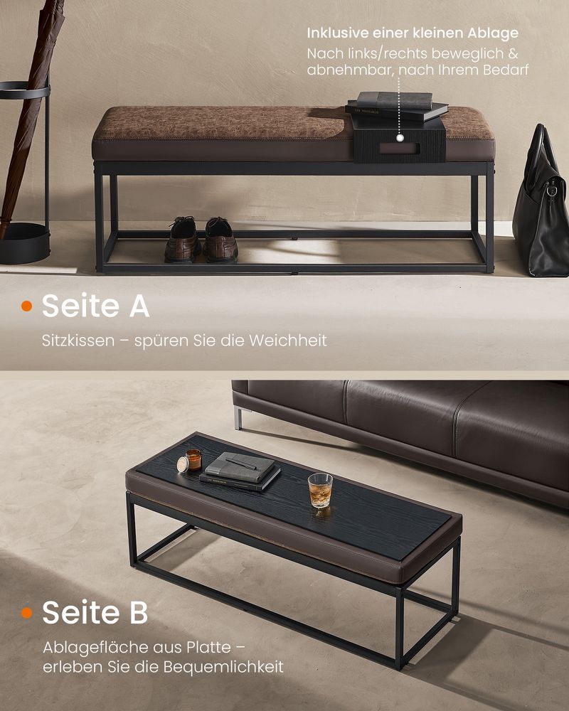 Zitbank met Opbergruimte – Wendbaar Zitkussen – Met Bijzetplank – Industrieel Design – Tot 300 kg Draagvermogen