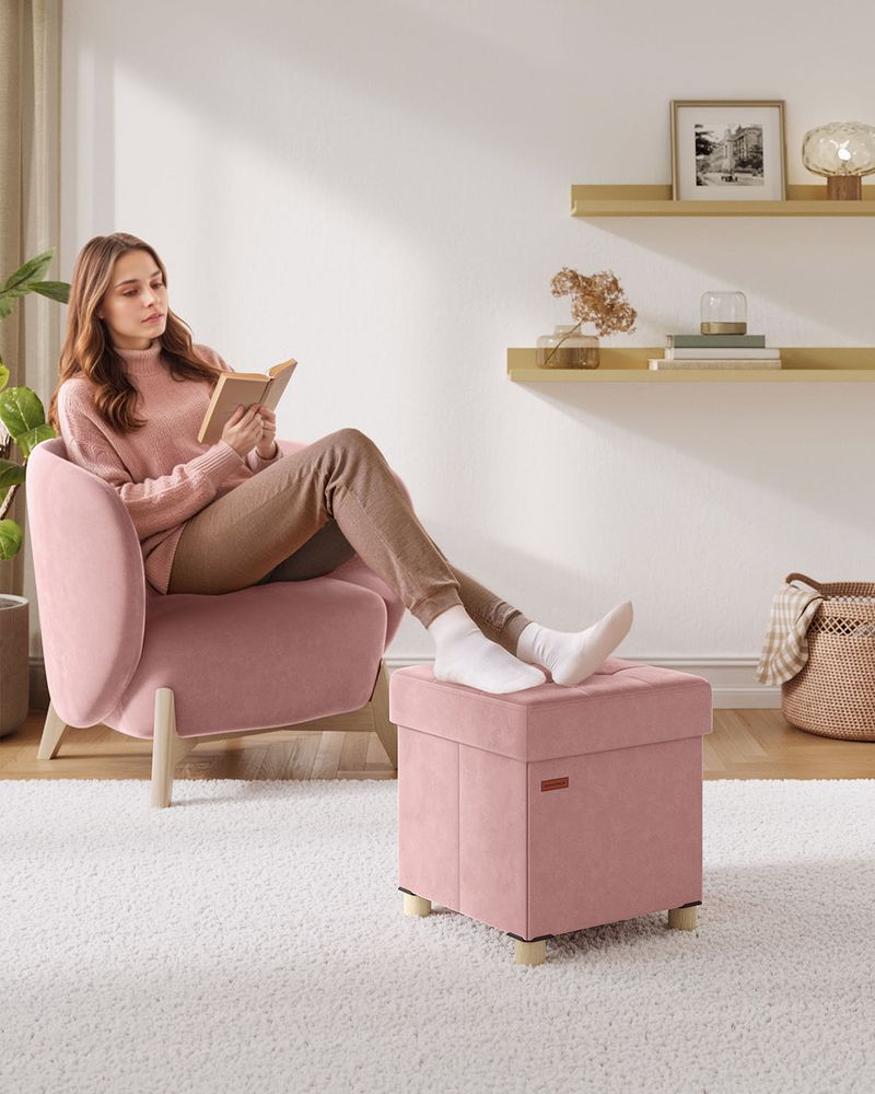 Opvouwbare Fluwelen Opbergkruk – 38 x 38 cm – 37L – Tot 300 kg Draagkracht