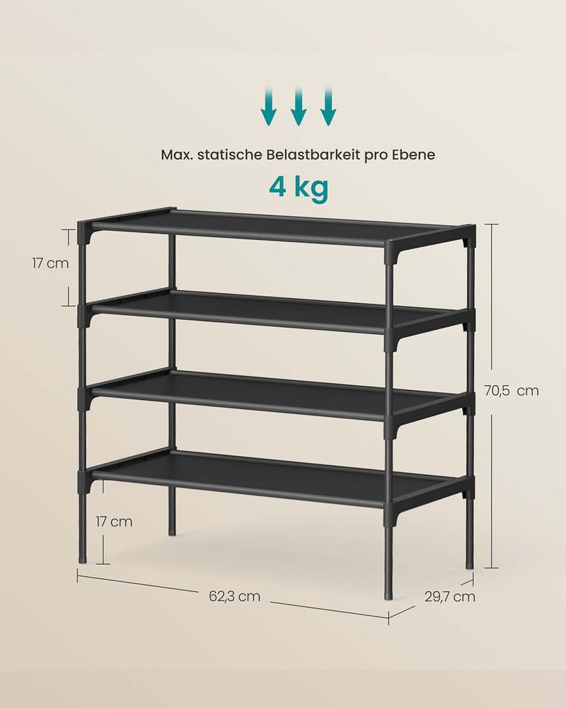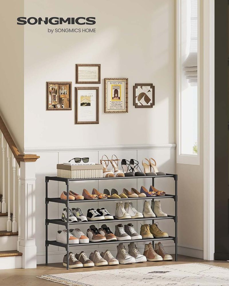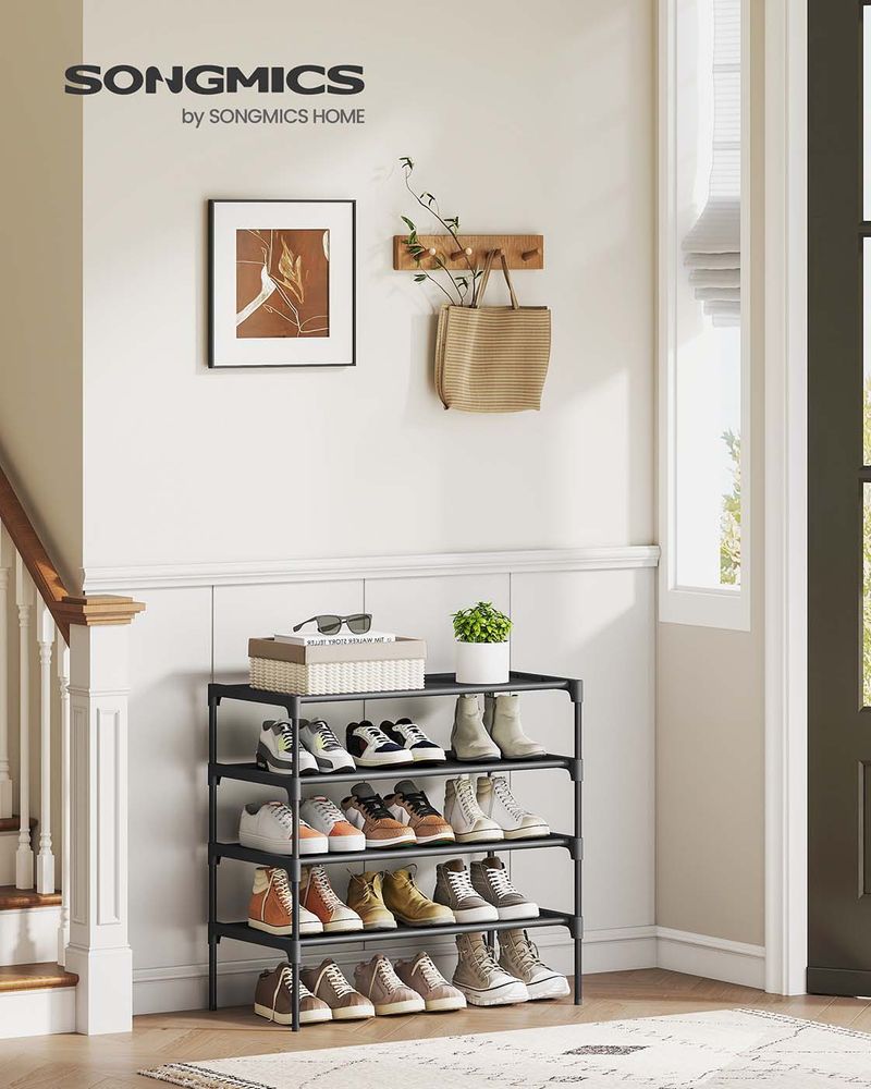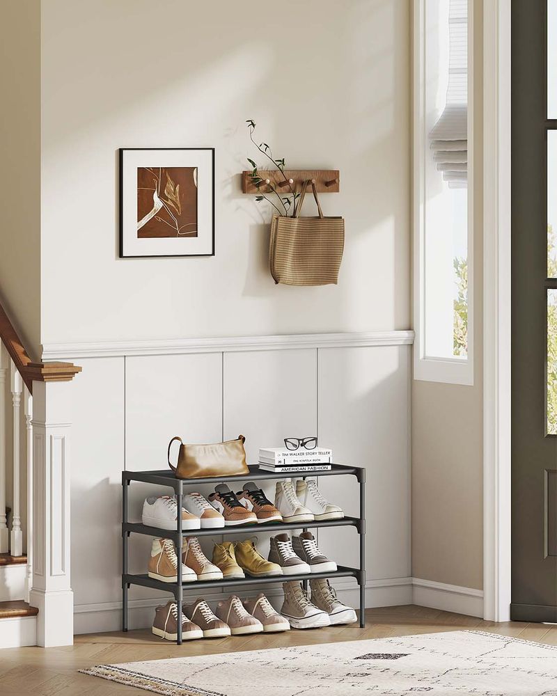 Schoenenrek – Metaal & Vliesstof – Stapelbaar – Eenvoudig te Monteren – Ruimtebesparend Ontwerp