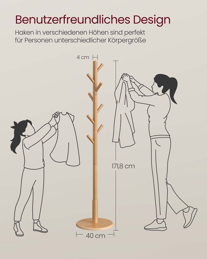 Kapstok – Massief Hout – Vrijstaand – 3 Verstelbare Hoogtes – Ronde Voet – Draagkracht 40 kg