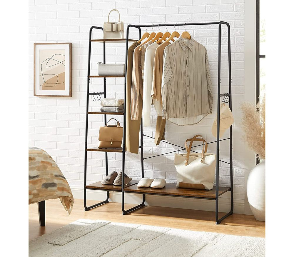 Garderoberek Met 5 Legplanken, 5 Dubbele Haken en Bovenrek – Industrieel, Praktisch en Stijlvol