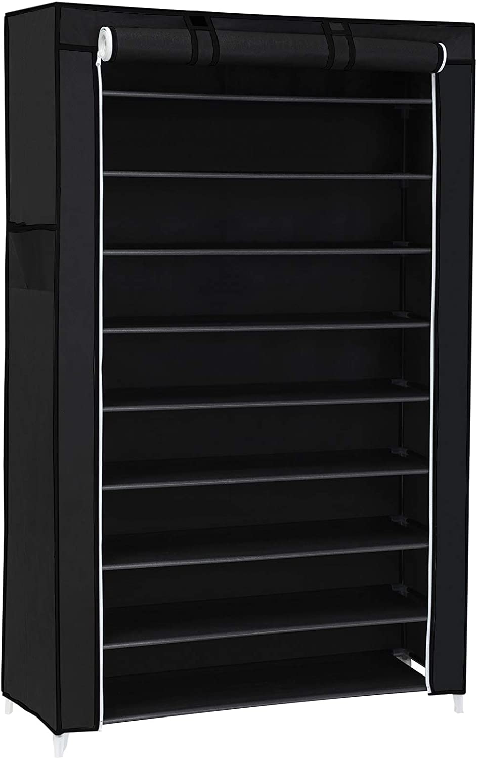 Schoenenkast met Stoffen Overtrek – 10 Lagen – Voor 45 Paar Schoenen – Met Ritsdeur en Zijkanten