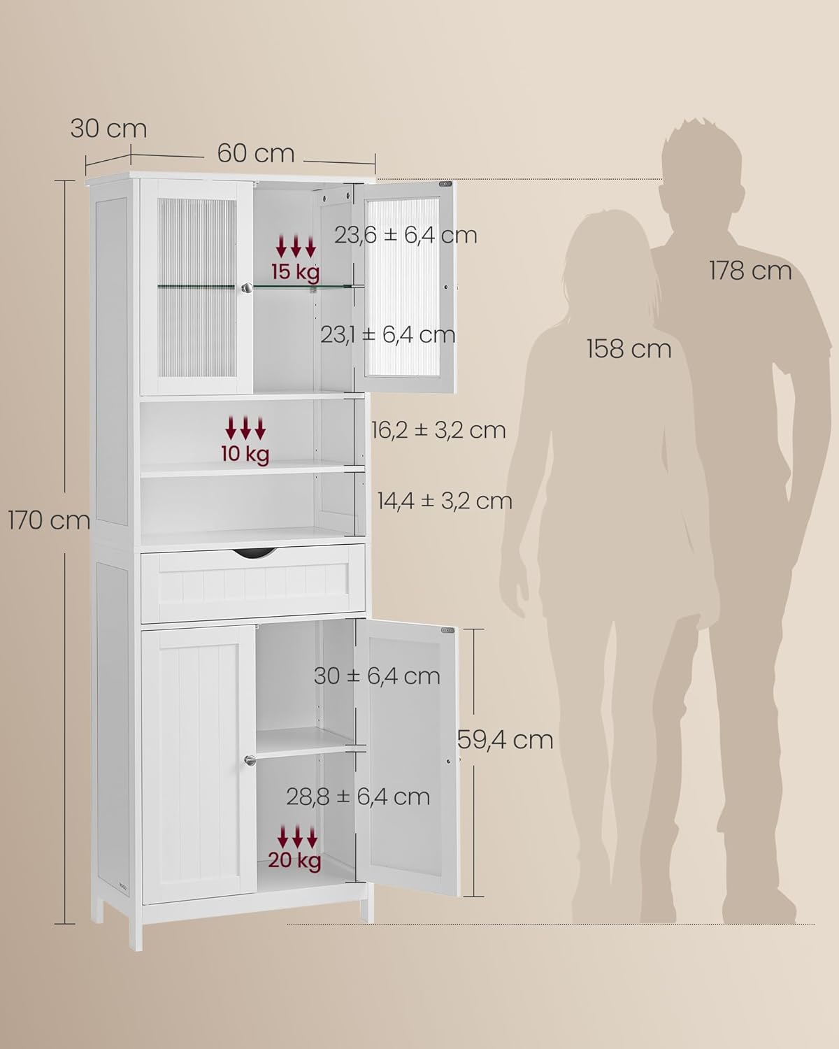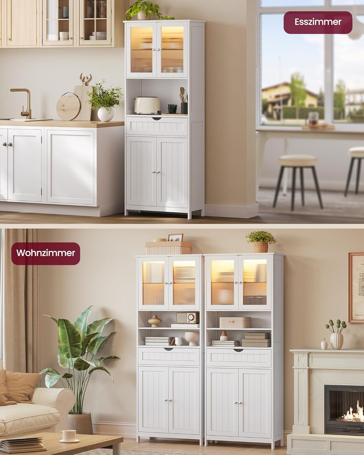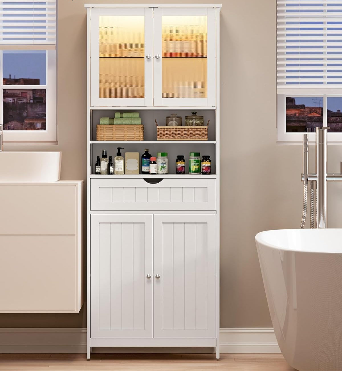Badkamerkast Met of Zonder Ledverlichting – Opbergkast met Verstelbare Planken, Lade en Open vakken