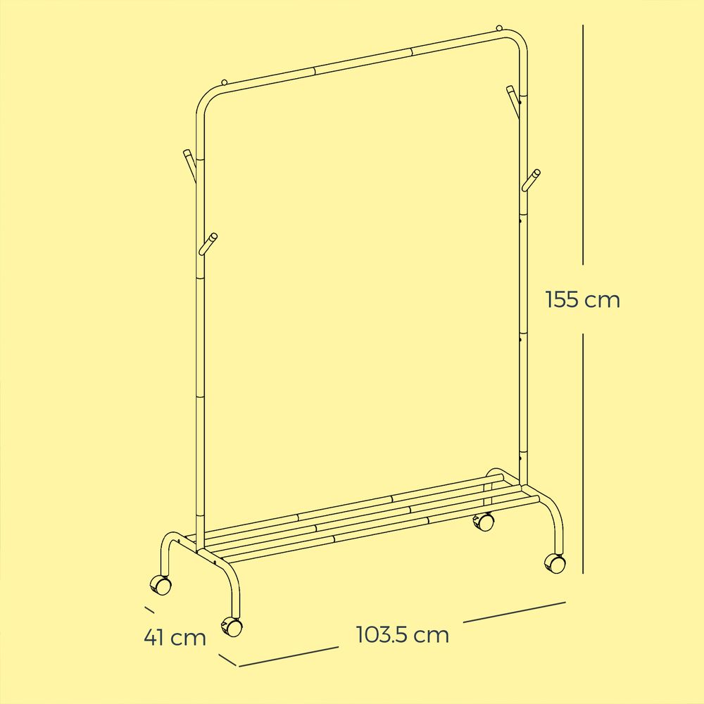Verrijdbare Kledingstandaard met Haken en Legplank – Stabiel Staal - 50 kg Draagvermogen