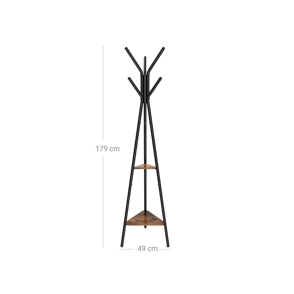 Kapstok van Massief Hout – Vrijstaand – 8 Haken – Verstelbare Hoogte – 47 x 47 x 175 cm – Zwart