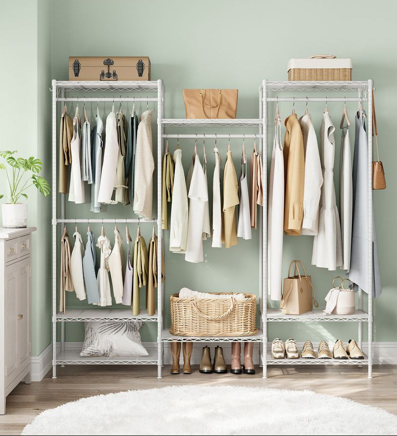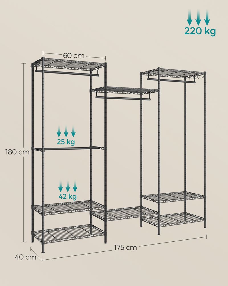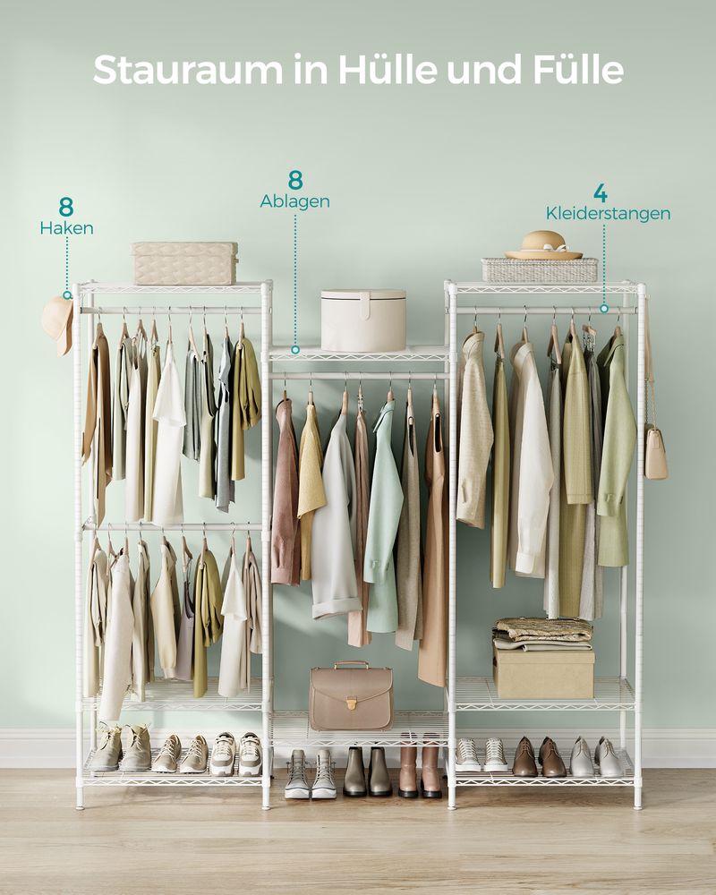 Metalen Garderobestandaard met 4 Kledingstangen en 8 Legplanken – Grote Opbergruimte