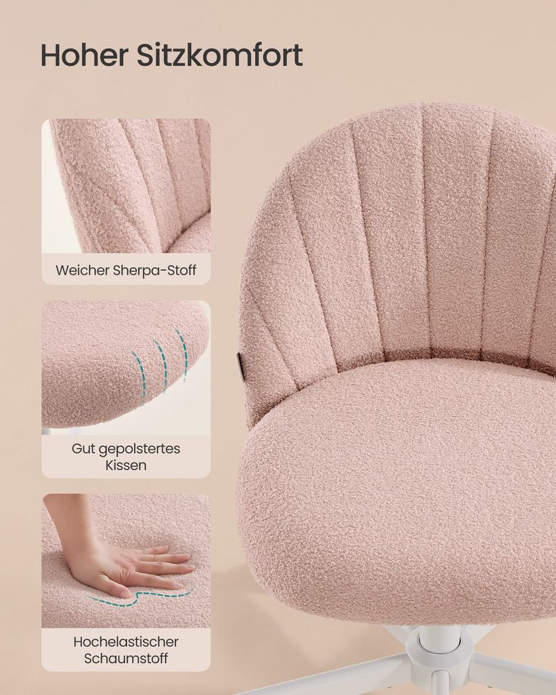 Draaistoel – Compact Ontwerp – Fleece Bekleding – In Hoogte Verstelbaar – 360° Wielen – Ergonomische Rugleuning