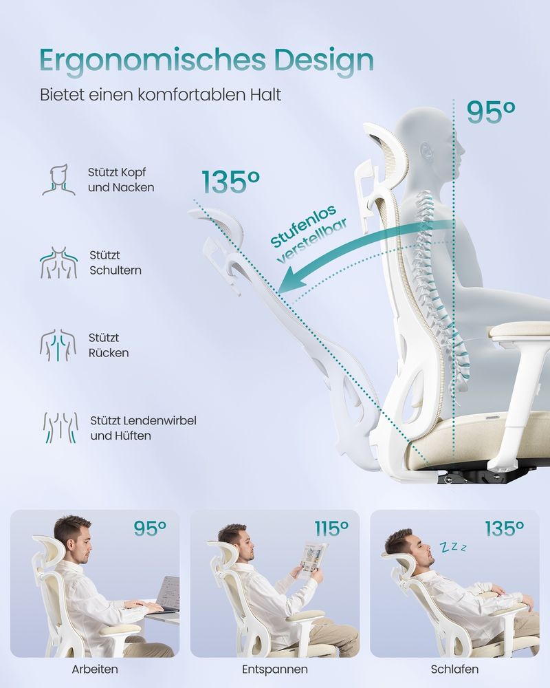 Ergonomische Bureaustoel – Verstelbare Lendensteun – Ademend Netweefsel – Kantelfunctie – Draagvermogen 150 kg