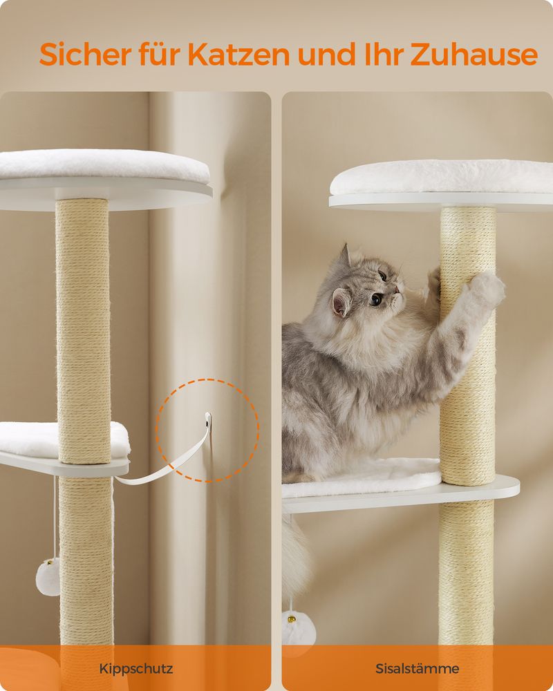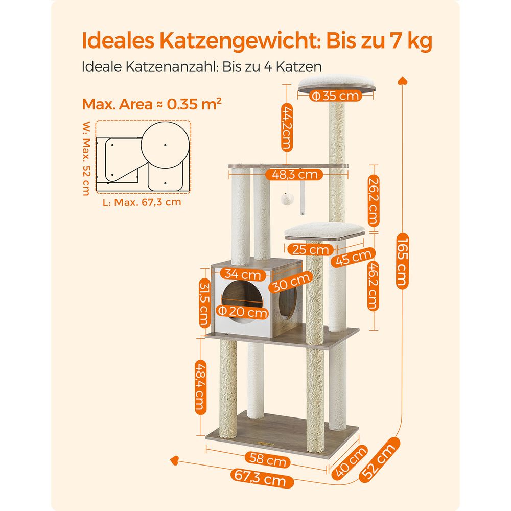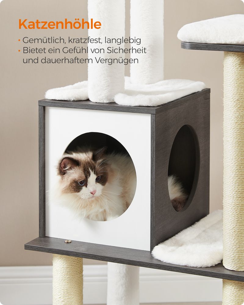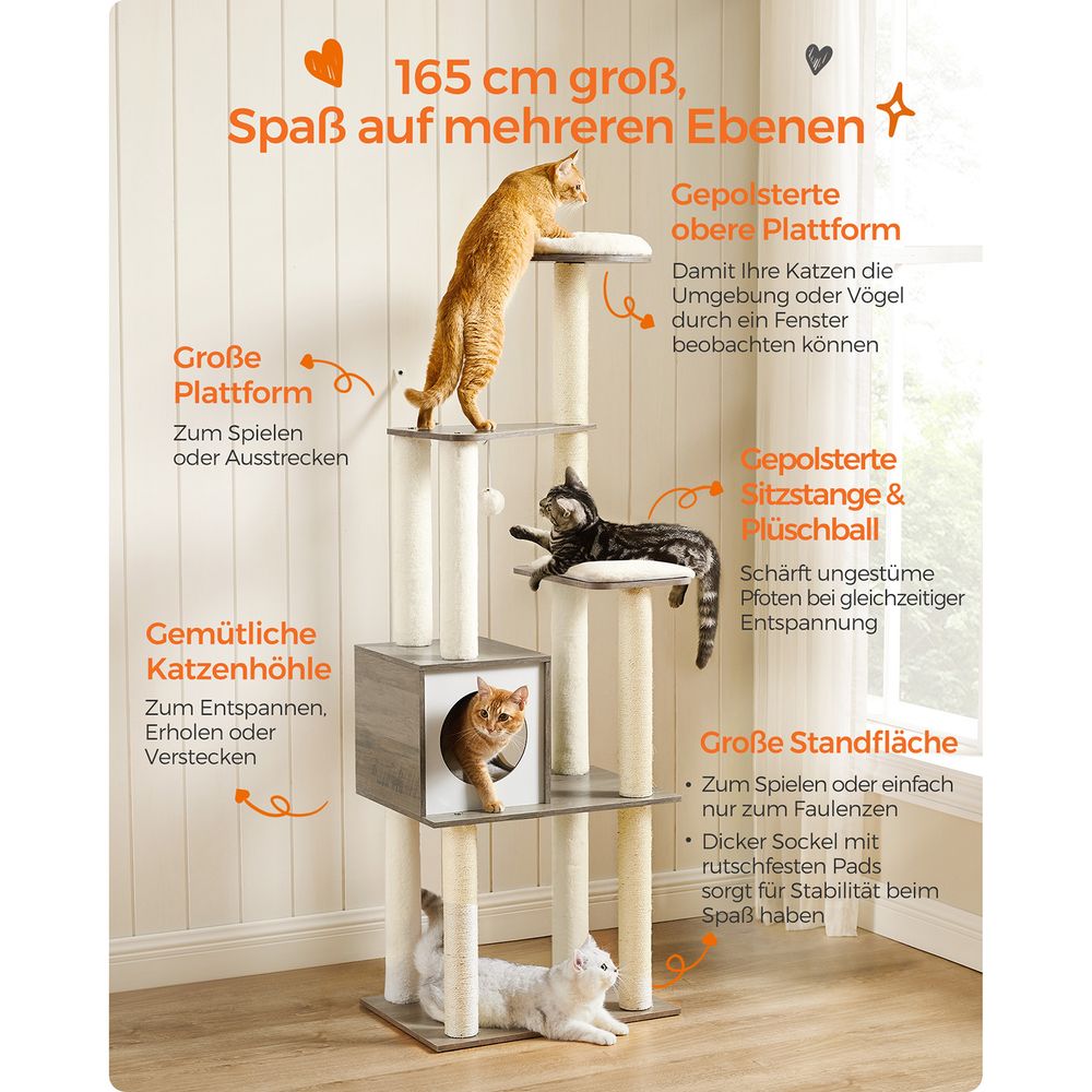 Moderne Krabpaal Van 165 cm – Stijlvol Kattenmeubel Met Zachte Kussens, Krabpalen en Afneembare Hoezen