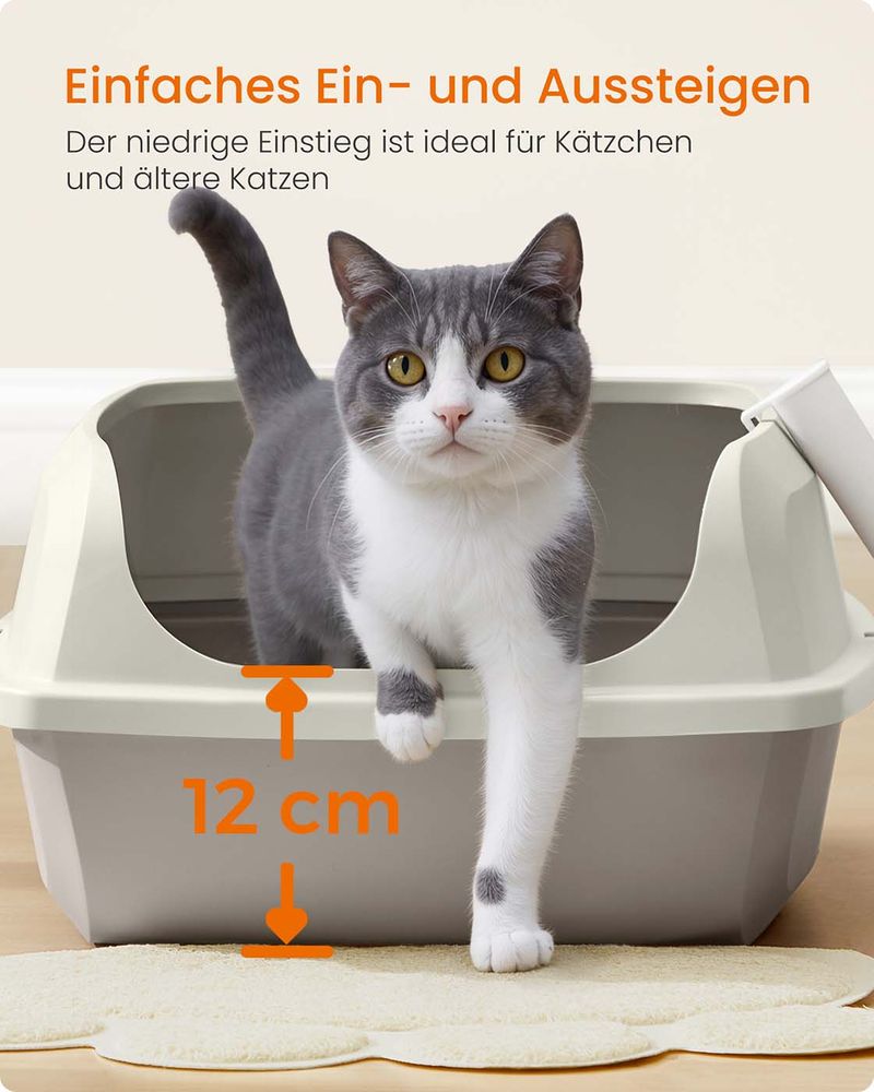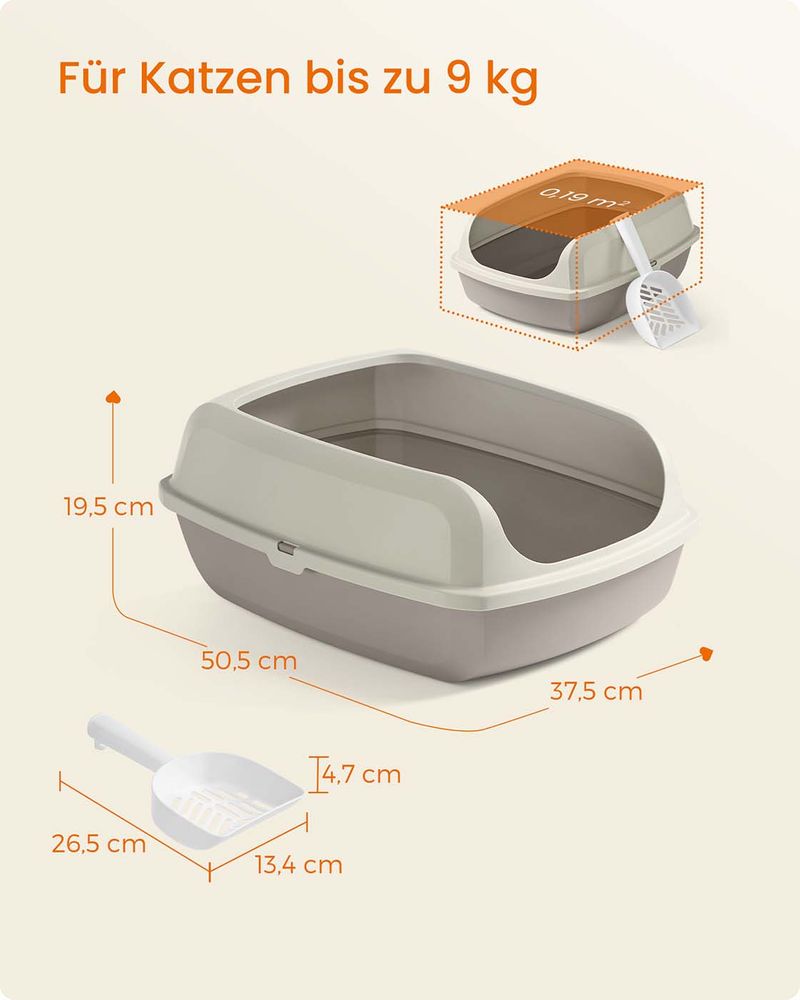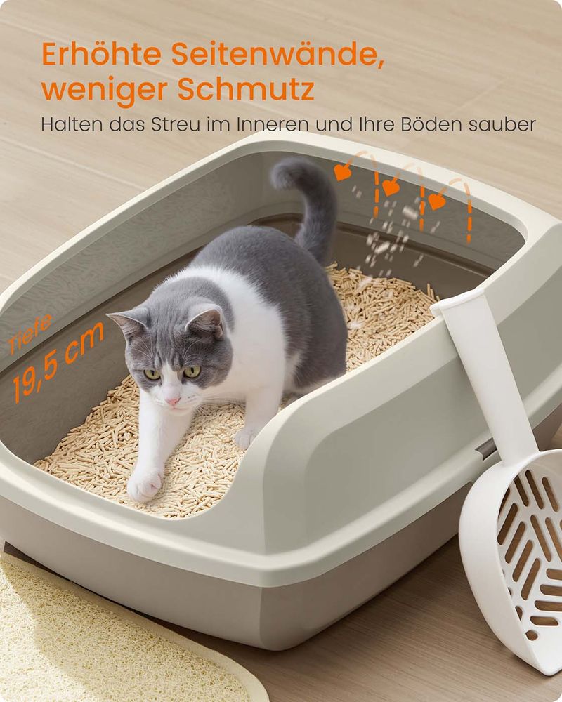 Kattenbak XL – Open Bovenkant – Hoge Zijwanden – Met Schep – Eenvoudig Schoon te Maken – Geschikt Voor Grote Katten