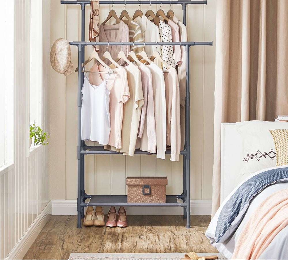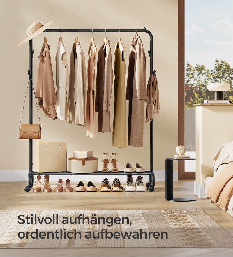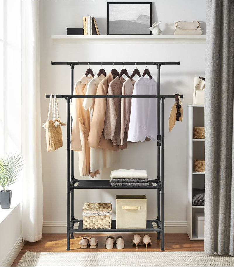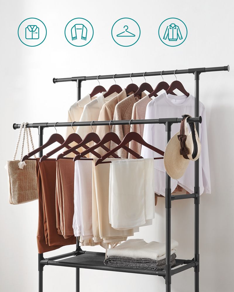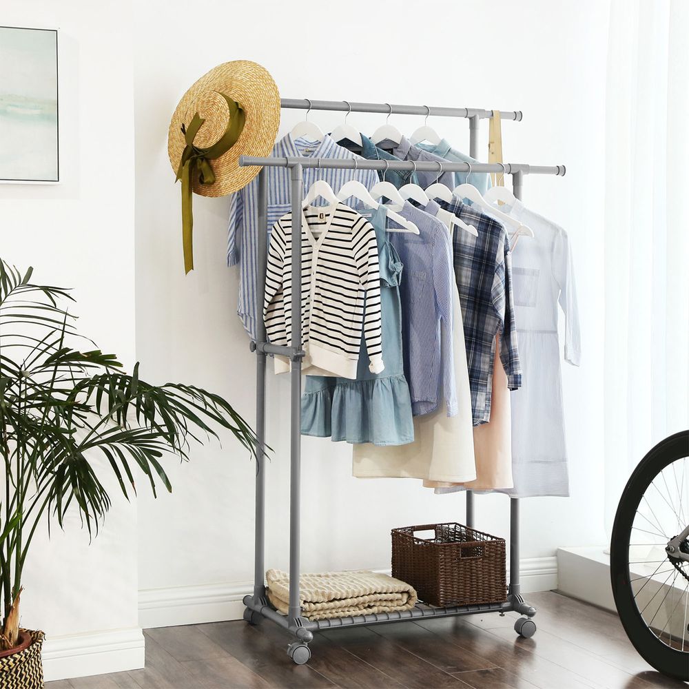 Dubbele Uittrekbare Kledingstandaard met Wielen – Verstelbare Garderobe met Schoenenrek