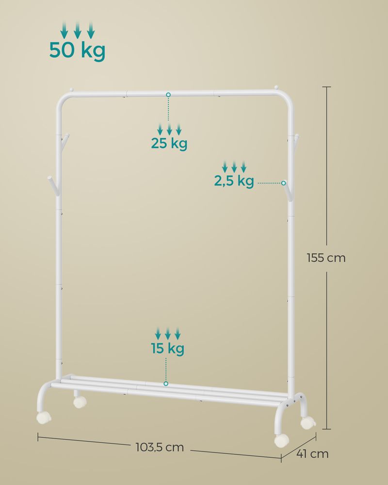 Mobiele Kledingstandaard met Wielen - Veelzijdig Ontwerp - Cactus Haken