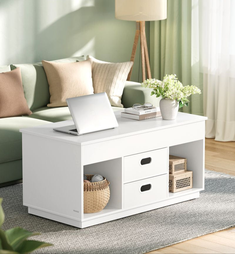 Salontafel met Lift-Top – Moderne Koffietafel met Verstelbaar Tafelblad – Verborgen Opbergruimte & Lades – 100 cm – Hout & Staal