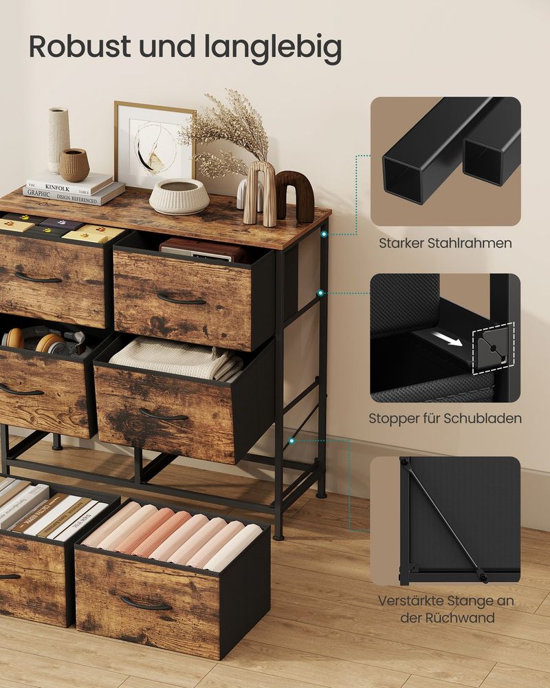 Moderne Kast – Commode Met 6 Laden – Industrieel Design – Stalen Frame – Veel Opbergruimte – 73 cm Hoog