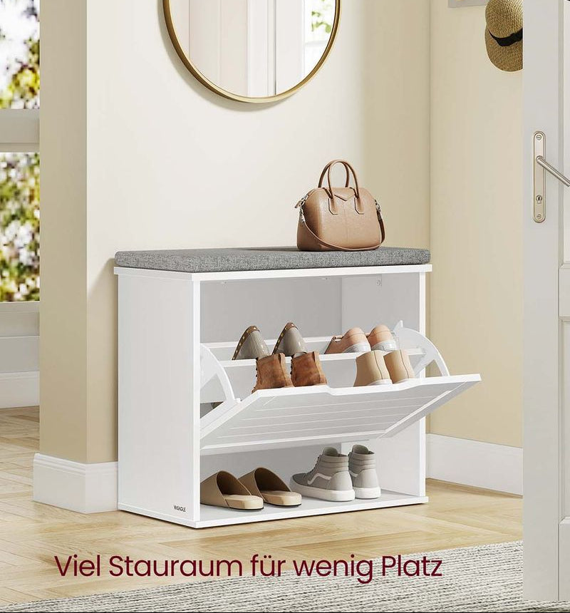 Schoenenbank Met Opbergruimte – Met Kussen – Verstelbare Indeling – Landelijk Design – Draagkracht 136 kg