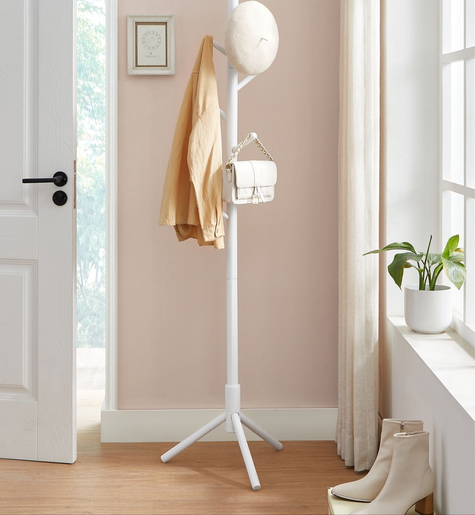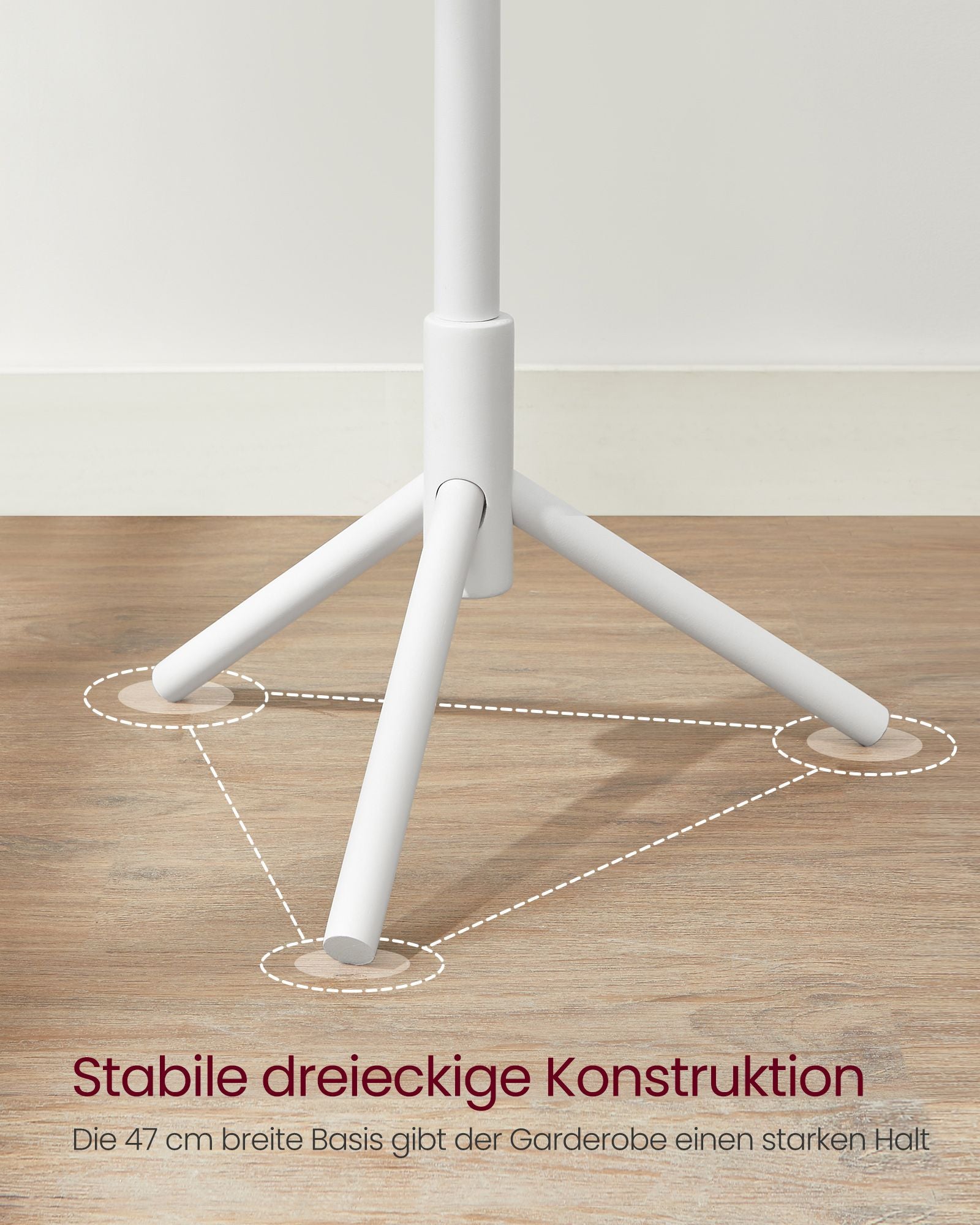 Vrijstaande Kapstok – Verstelbaar – 8 Haken – Massief Hout – 47 x 47 x 175 cm – Wit