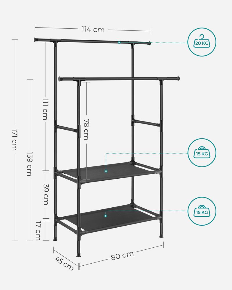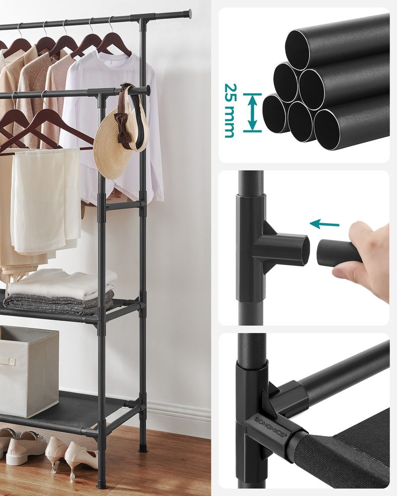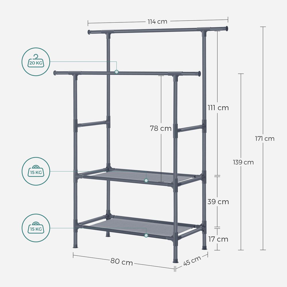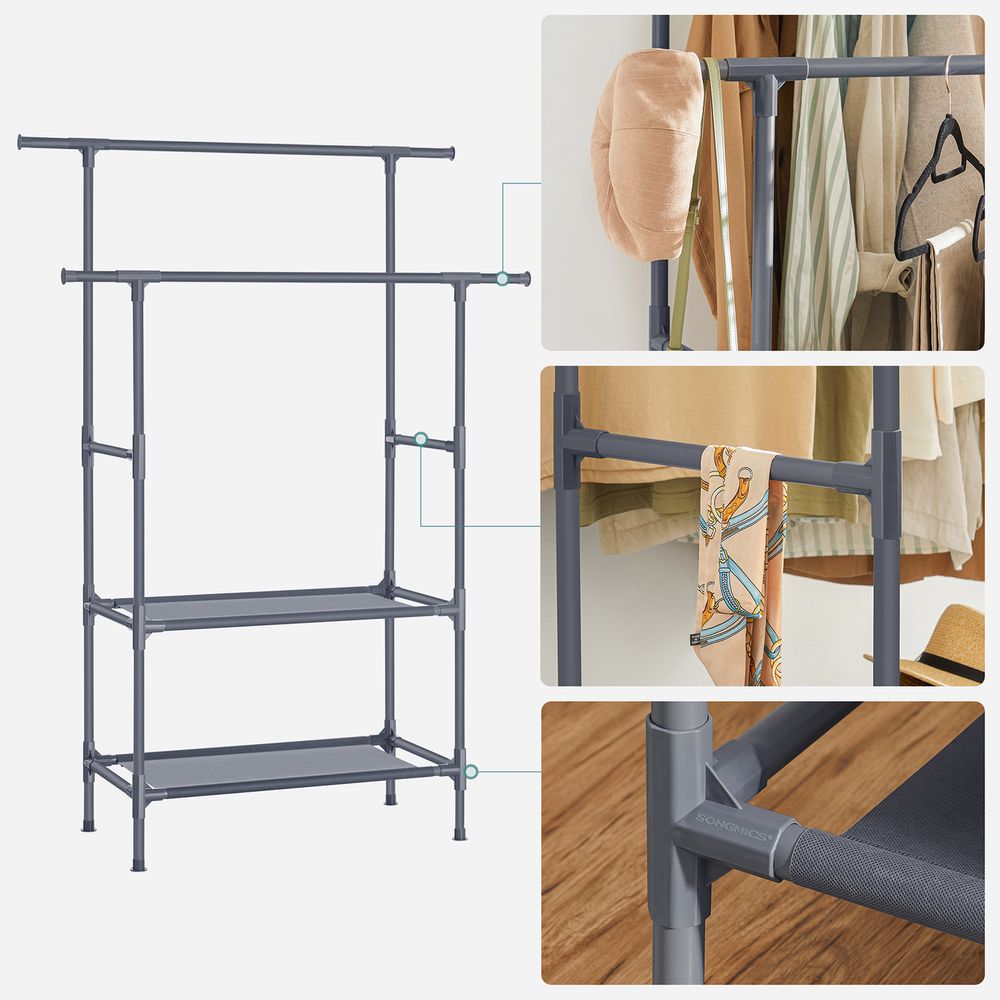 Dubbele Kledingstandaard met Planken – Lichtgewicht Garderobe van Metaal en Vliesstof