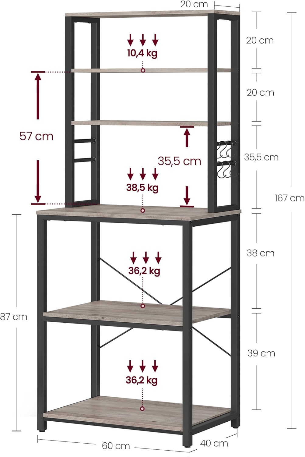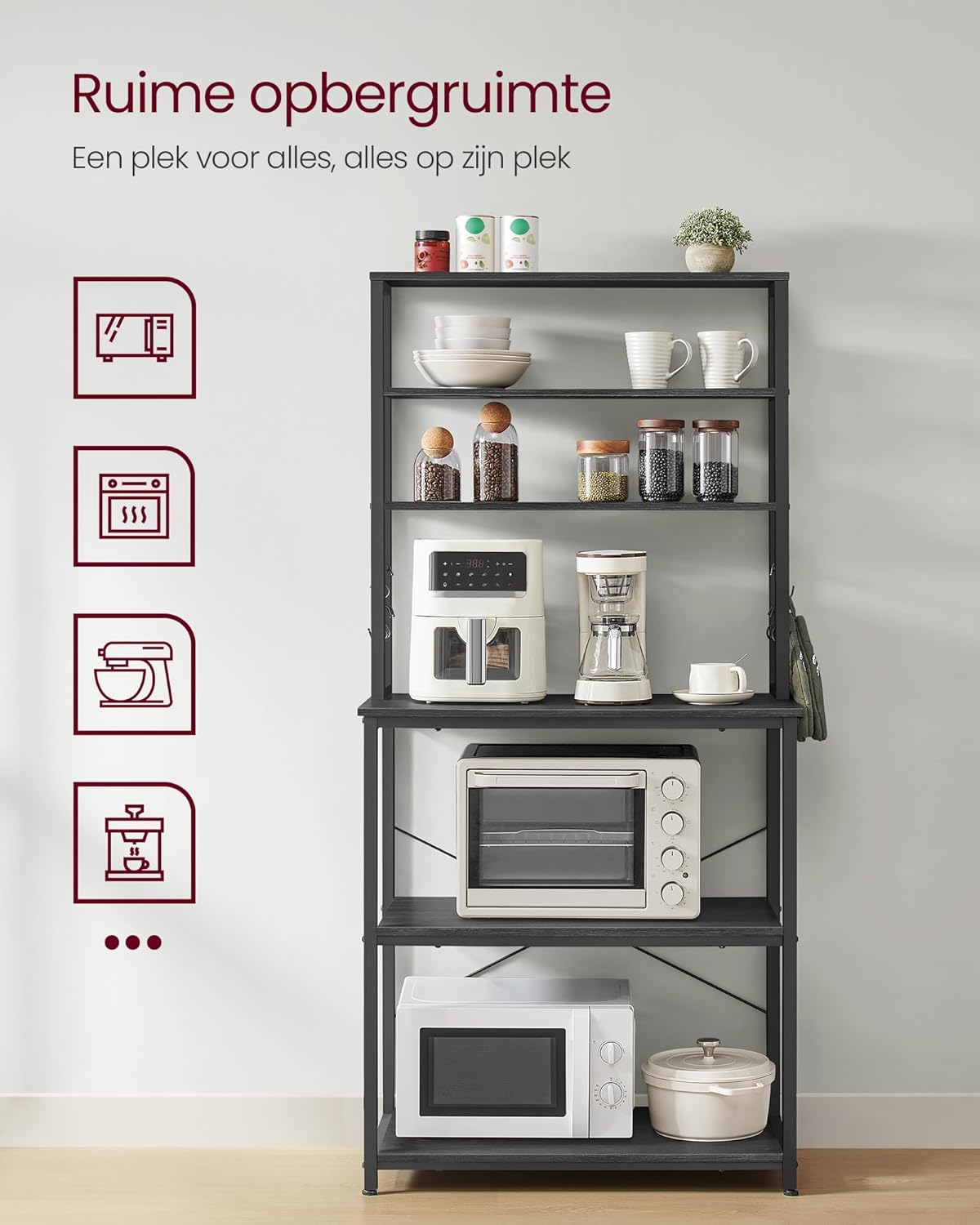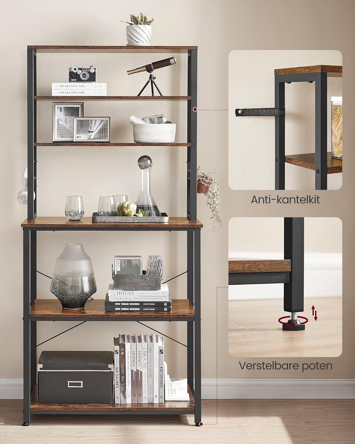 Keukenrek met 4 planken – Industriële Stijl – Met 6 S-haken – Verstelbare Poten - Keukenkast