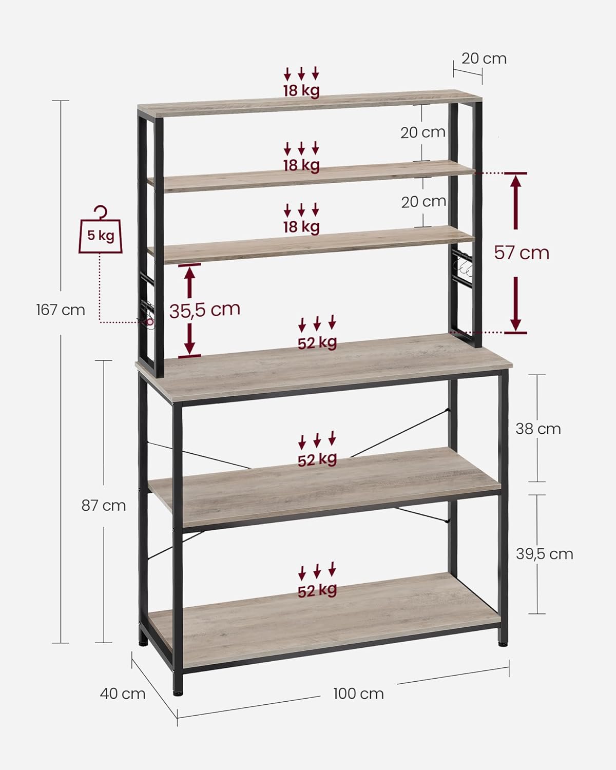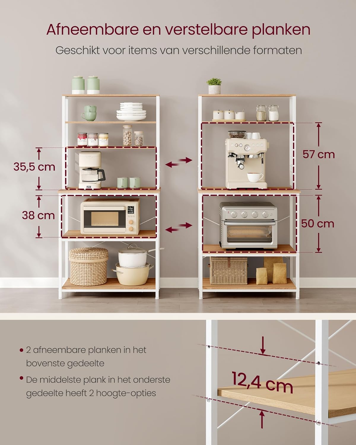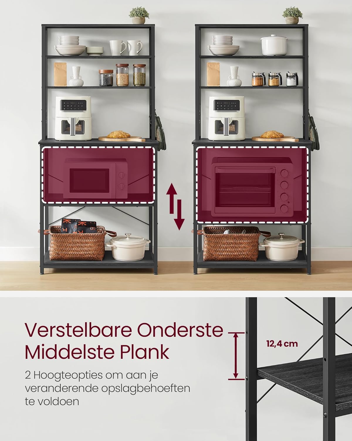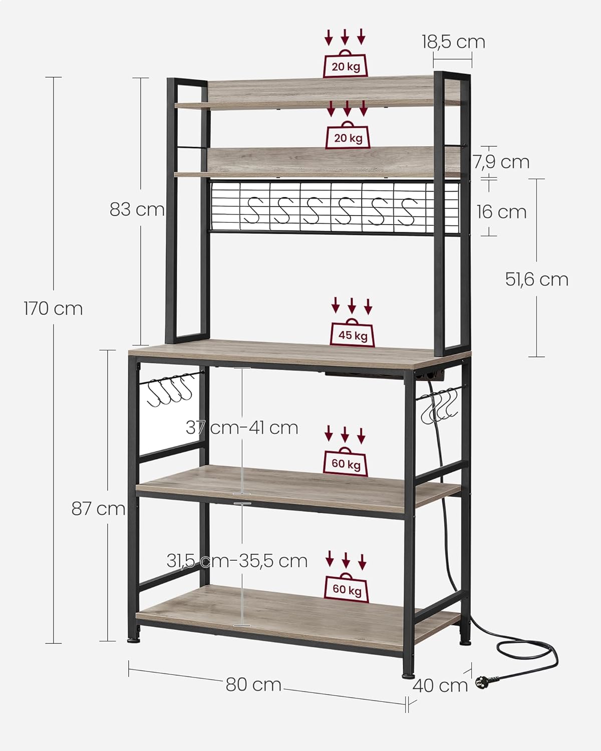 Keukenrek met Stopcontacten – 5 Verstelbare Planken – 80 of 100 cm Breed – Inclusief Haken